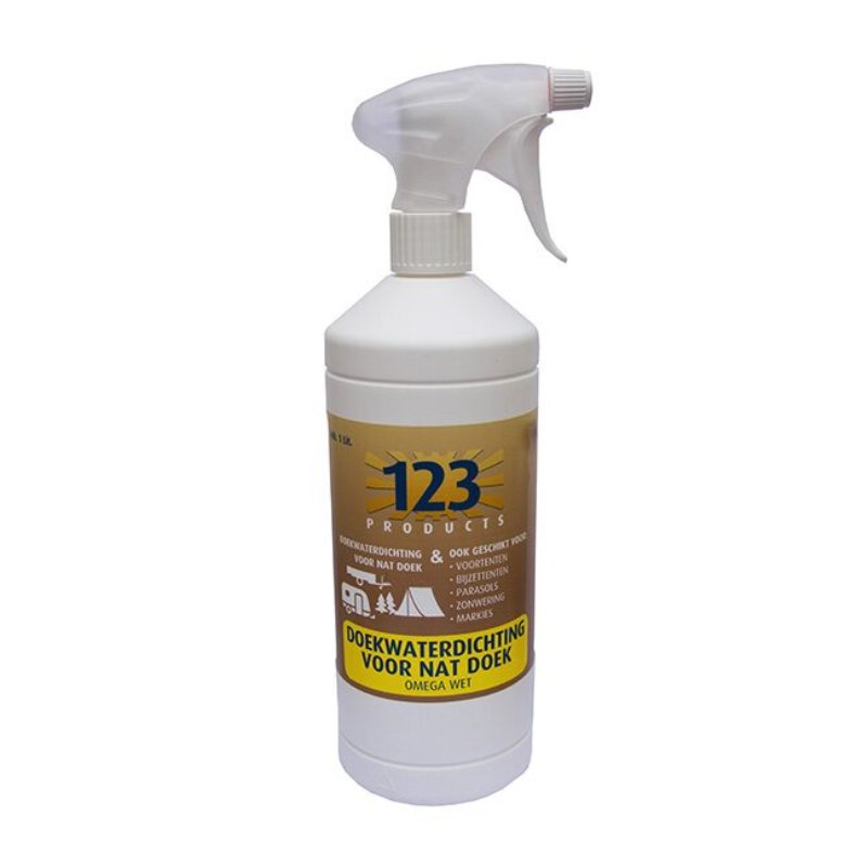 Omega Wet van 123 is speciaal bedoeld om nat doek weer waterdicht te maken. Het middel is geschikt voor vrijwel ieder soort tentdoek. Een ideaal impregneermiddel wanneer je met een lekkende (voor)tent zit en de regenbuien elkaar sneller opvolgen dan dat je tent droogt.