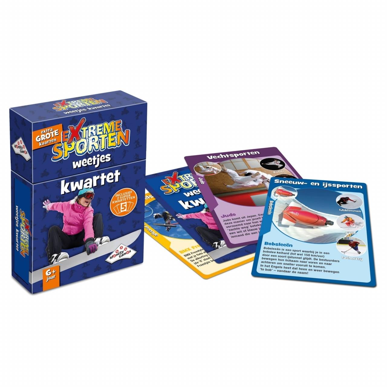 De weetjeskwartetten van 999 Games bieden niet alleen vermaak, maar ook nieuwe kennis die je verder helpt! Kwartet is het perfecte kaartspel voor een gezellig moment met de hele familie. Kinderen zullen zeker genieten van het extreme sporten weetjes kwartet! De extra grote kaarten zijn voorzien van kleurrijke afbeeldingen en boeiende feitjes over extreme sporten. Met hoeveel kilometer per uur racet een bobslee de baan af? Wat is de oudste sport ter wereld? Verzamel de juiste paren, onthoud de feiten en strijd voor de overwinning!