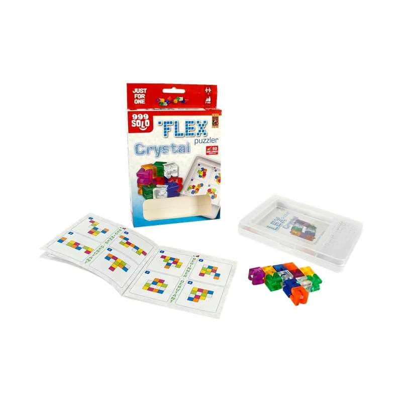 Breinbrekend puzzelplezier met de Flex Puzzler Crystal. Bedoeld voor iedereen die van ruimtelijke puzzels houdt. De 15 blokken aan het elastiek van de Flex Puzzler Crystal van 999 Games kunnen in elke richting worden gedraaid. 80 uitdagingen in 2 en 3D zorgen voor breinbrekend puzzelplezier.