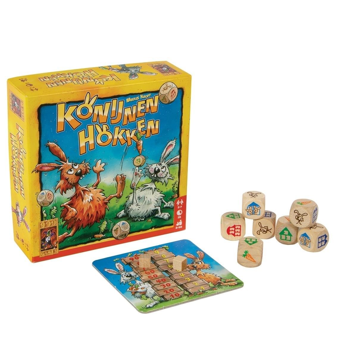 Konijnen Hokken past uitstekend in onze serie dobbelspellen en is ideaal voor op vakantie. Er kunnen maar liefst 7 spelers meedoen!