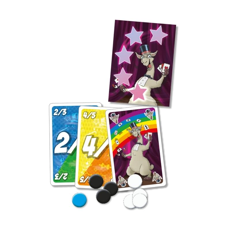 Vlot kaartspel voor het hele gezin, L.A.M.A. Cadabra is gebaseerd op het populaire L.A.M.A. van 999 Games. De lama opent zijn trukendoos. Nog steeds geldt: Leg Alle Minpunten Af, maar nu kun je ook tijdens een ronde minpuntenfiches incasseren, die je echter weer naar andere spelers kunt doorspelen. Speel je speciale kaarten handig, laat je door het magische fiche helpen en toon de anderen jouw goochelkunsten!