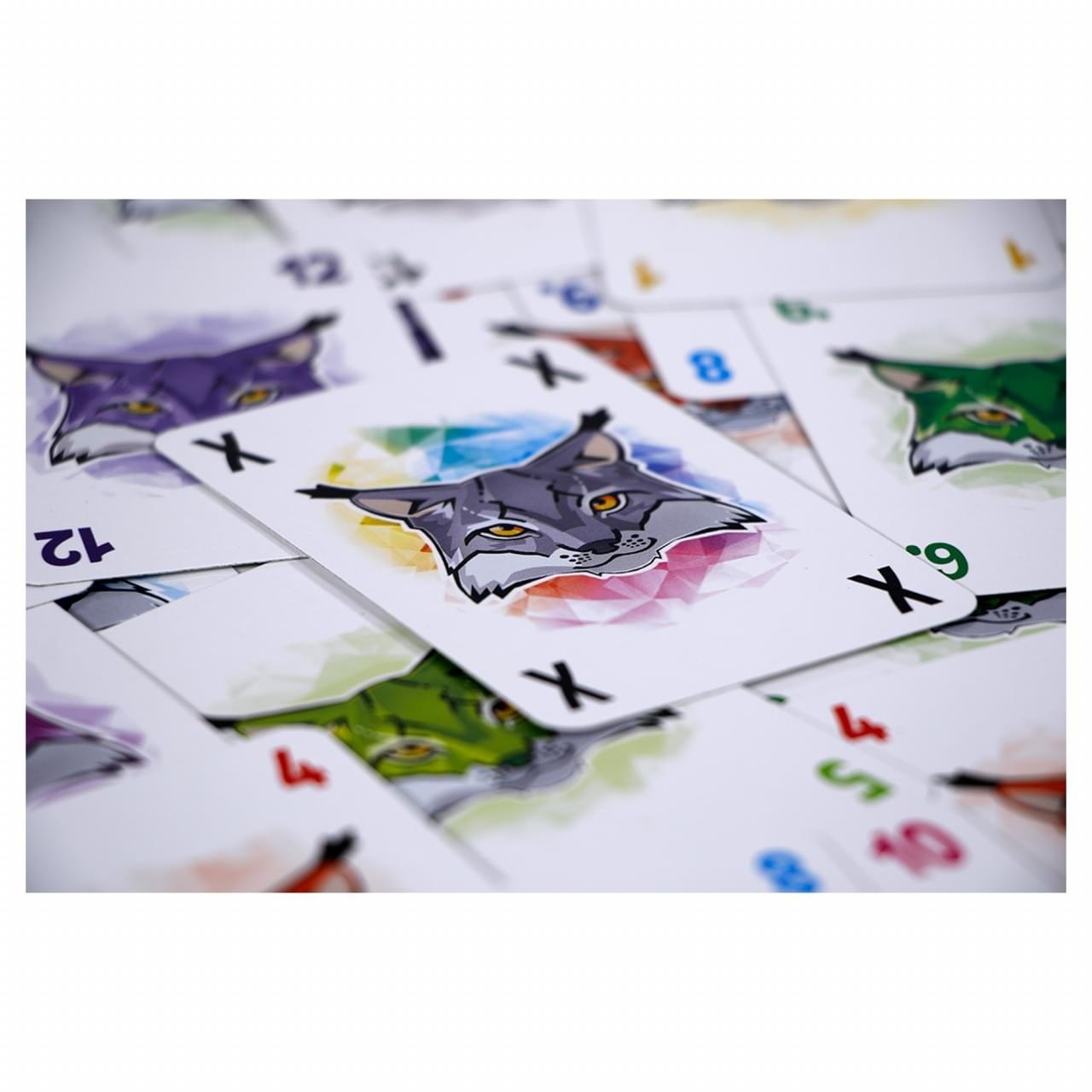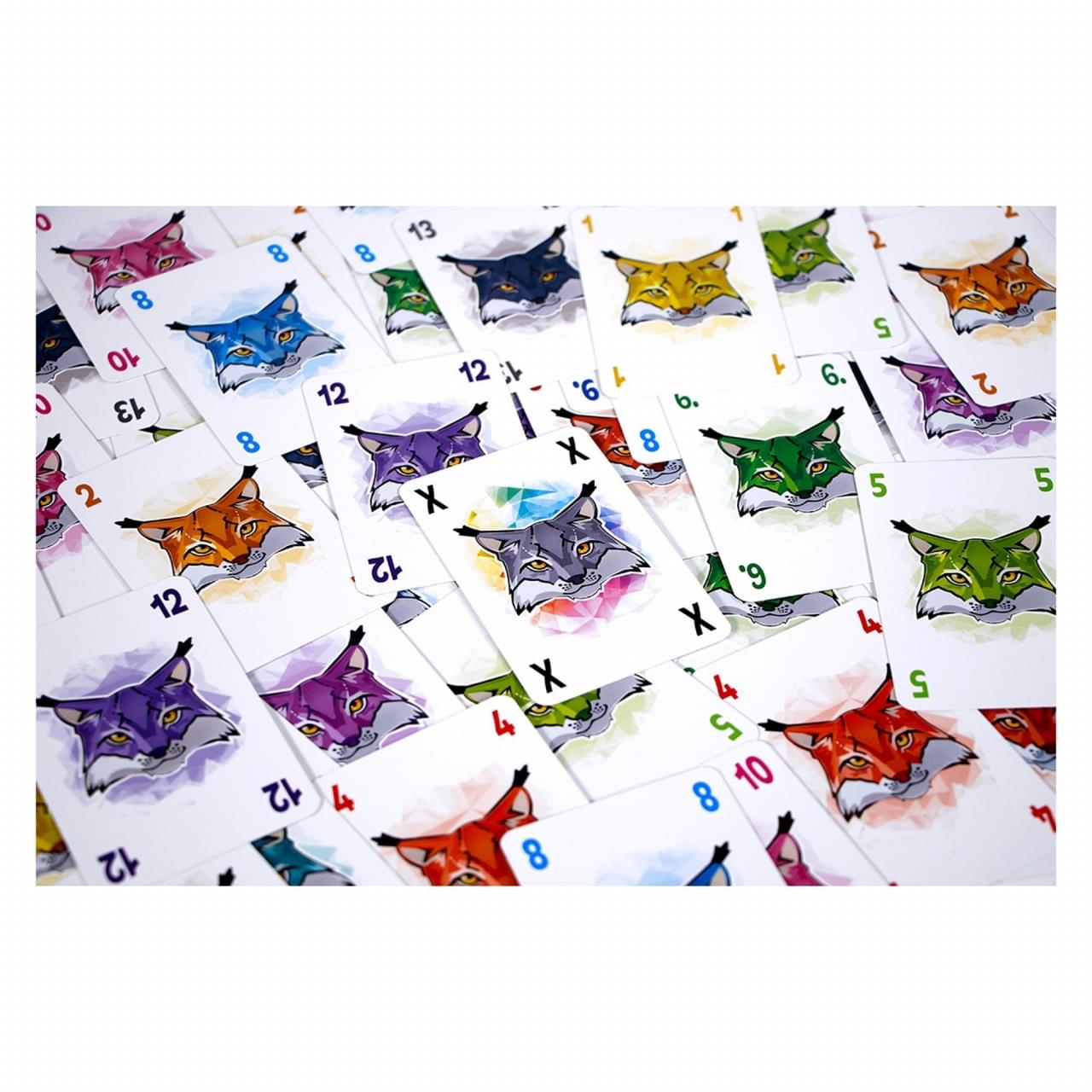 Zodra je kaarten hebt neergelegd, mag je namelijk kaarten van je tegenspeler stelen. Iedere speler die als bovenste groep een aantal kaarten heeft liggen dat gelijk is aan jouw groep en waarvan de waarde per kaart lager is dan die van jou, is de klos. Pak deze kaarten af en neem ze op hand, of dwing je tegenspeler deze kaarten zelf te verwijderen. Zo saboteer je elkaars puntenverzameling. Het spel heet niet voor niets Slynx!