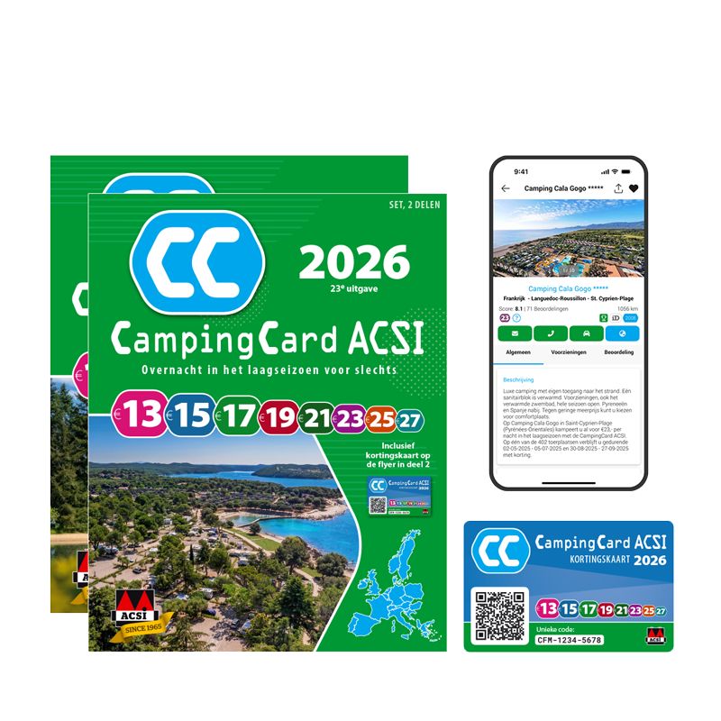 De CampingCard ACSI, met korting op heel veel campings voor 2 volwassenen, in het voor- en na seizoen.