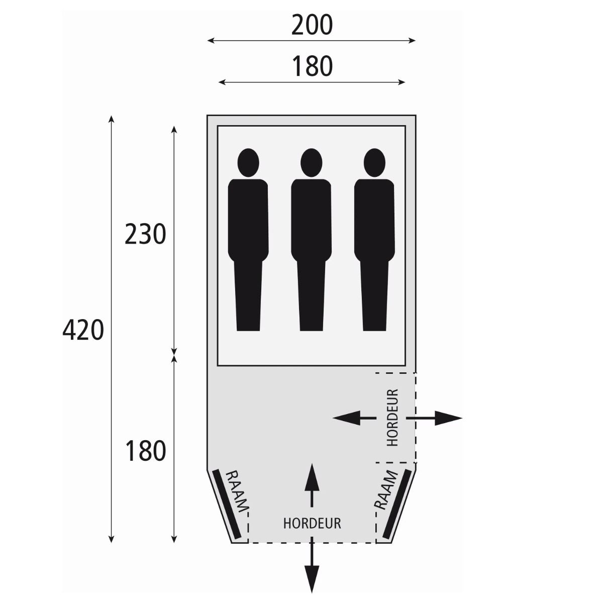 | Breedte buitentent | 200 |