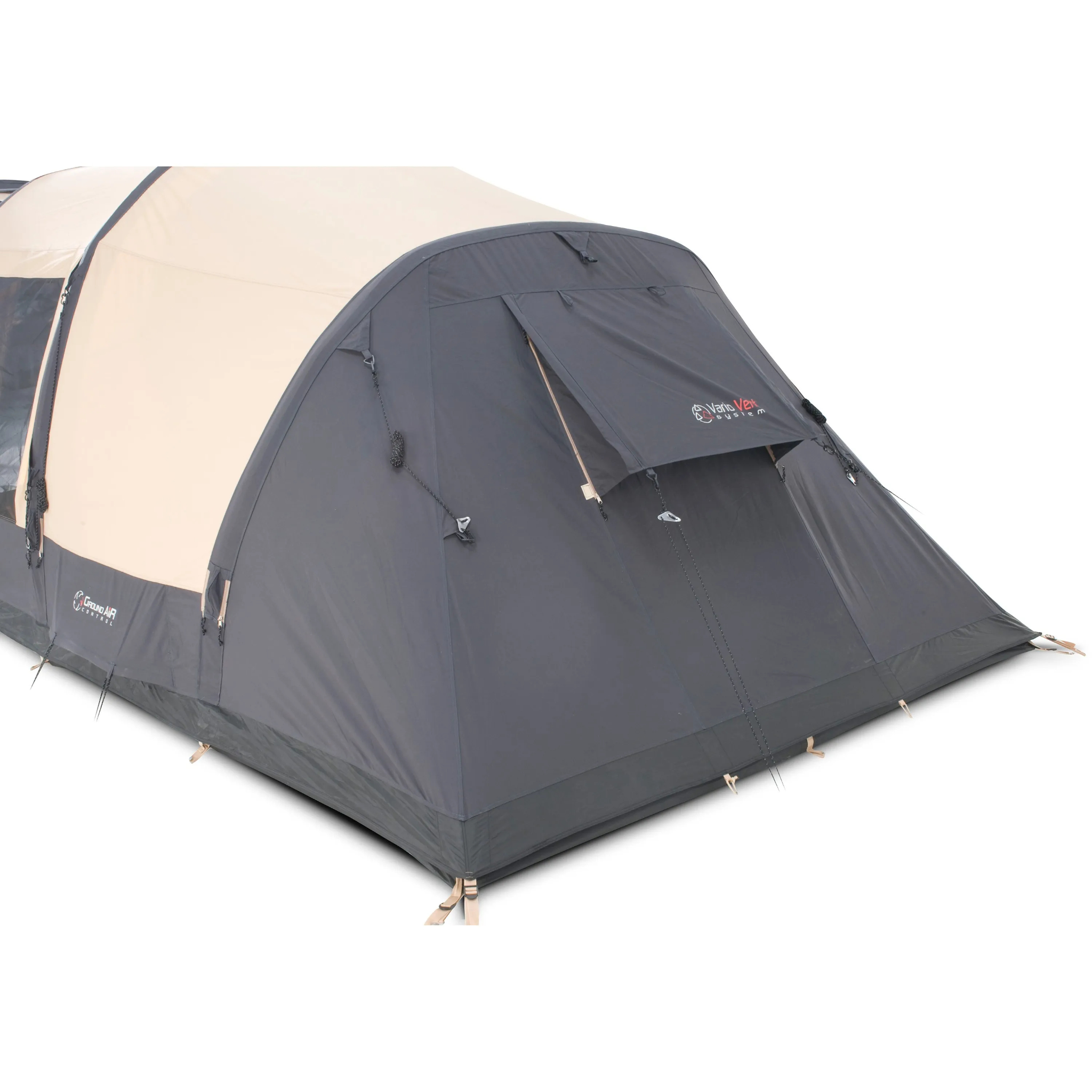 De slaapcabine biedt ruimte aan vier personen, is volledig verduisterd en extra lang, wat vooral langere kampeerders zullen waarderen. En dankzij de Quick Fix scheerlijnen staat de tent stabiel, ook bij wat wind.