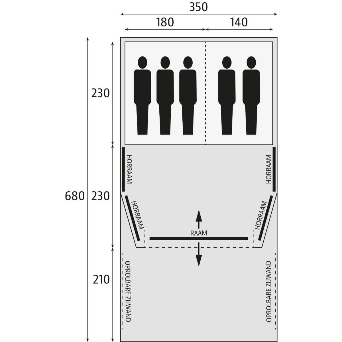 Met de Airwave 350 Deluxe TC - model 2024 heb je een bijpassende luifel tot je beschikking waardoor je extra beschutting hebt tegen zon en regen. Deze rits je eenvoudig vast aan de voorkant van de tent.