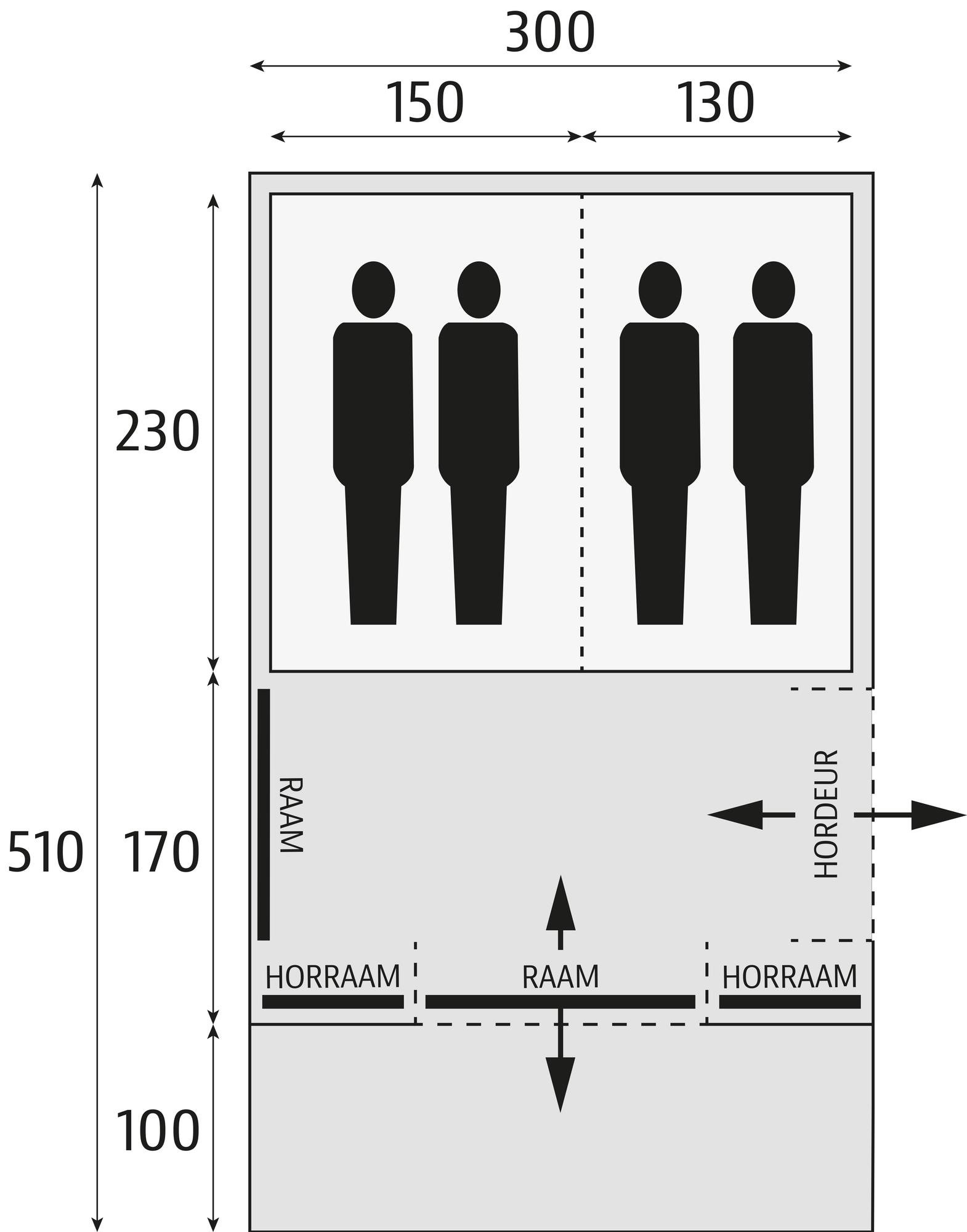 | Breedte binnentent | 300 |