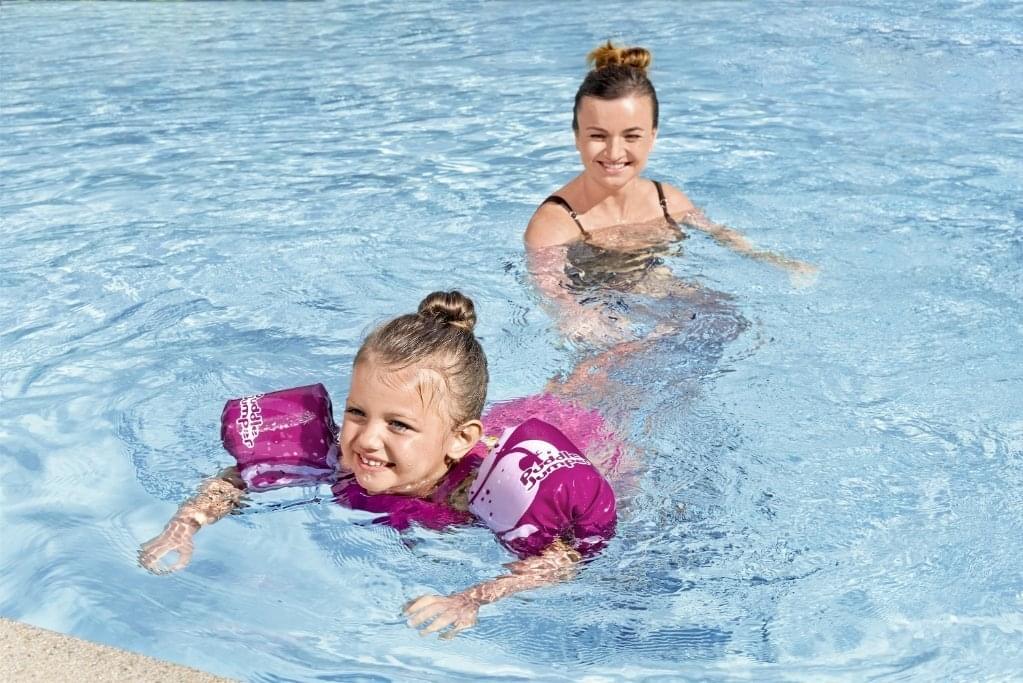 Met dit zwemvest kan je samen met je kleintje(s) op zwemavontuur! De Puddle Jumper van Bestway heeft grote armbandjes met ingenaaide schuimpads. Dit maakt het drijven gemakkelijker voor kinderen die net leren zwemmen. Ook zorgt de verstelbare gesp aan de achterkant van het zwemvest voor een veilige sluiting die kinderen zelf (indien goed vastgemaakt) niet zomaar zelf los kunnen maken. Let wel op: dit zwemvest is geschikt voor kinderen die 15 tot 30 kg wegen.