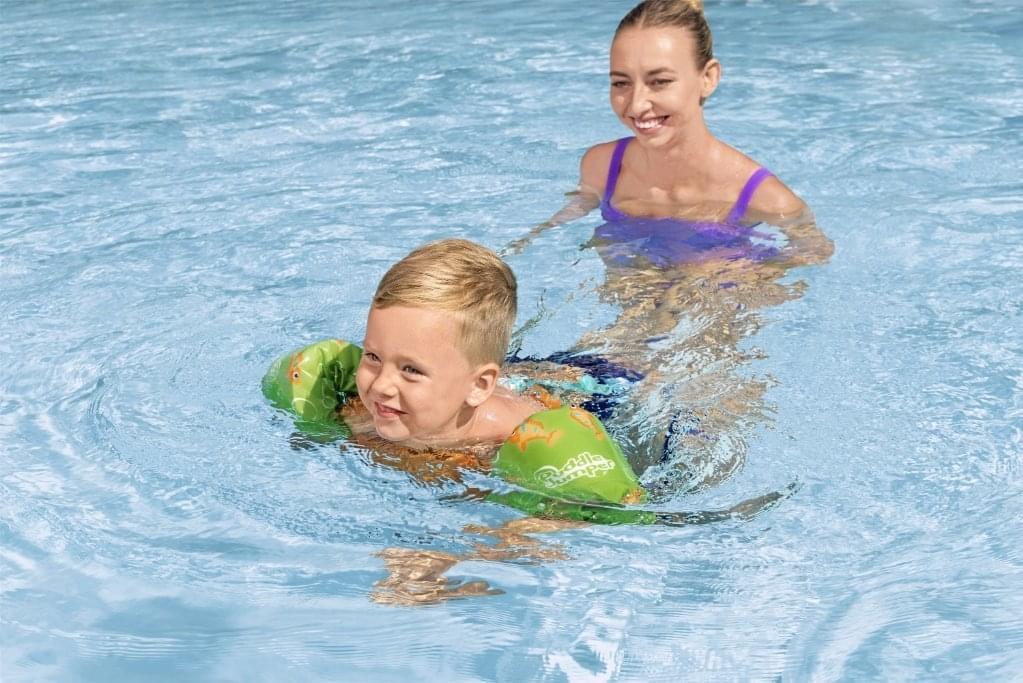 Met dit zwemvest kan je samen met je kleintje(s) op zwemavontuur! De Puddle Jumper van Bestway heeft grote armbandjes met ingenaaide schuimpads. Dit maakt het drijven gemakkelijker voor kinderen die net leren zwemmen. Ook zorgt de verstelbare gesp aan de achterkant van het zwemvest voor een veilige sluiting die kinderen zelf (indien goed vastgemaakt) niet zomaar zelf los kunnen maken. Let wel op: dit zwemvest is geschikt voor kinderen die 15 tot 30 kg wegen.