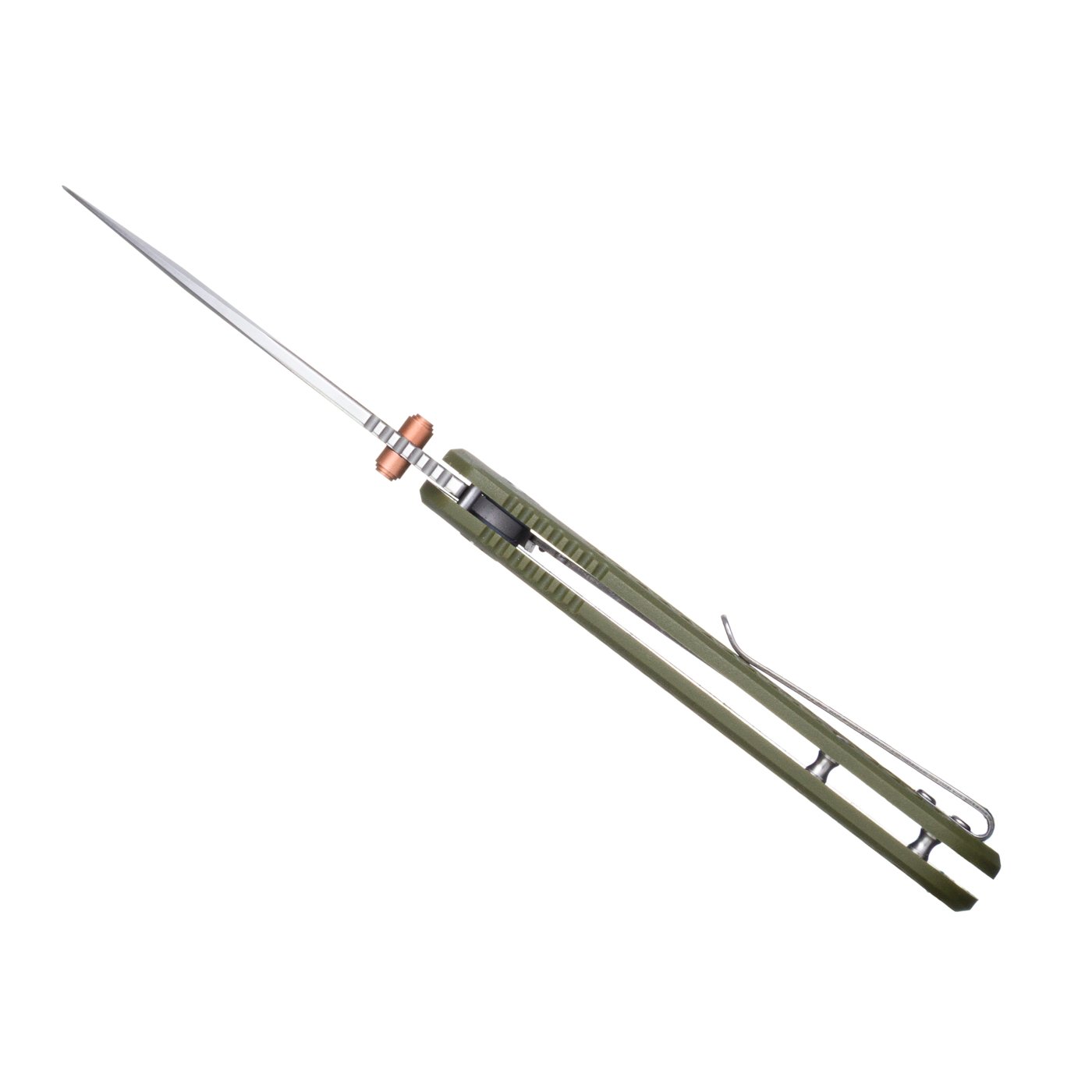 Het heft is vervaardigd uit lichtgewicht FRN (glasvezelversterkt nylon) en voorzien van een stevig grip-patroon voor optimale controle, zelfs in natte omstandigheden. Dankzij de deep-carry clip draag je het mes discreet en comfortabel bij je.