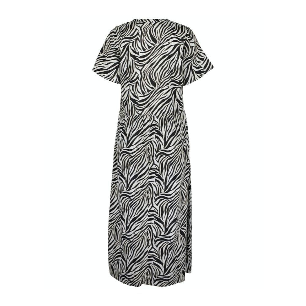 Deze luchtige maxi jurk van Blue Seven heeft een opvallende dierenprint en een leuk detail bij de V-hals.