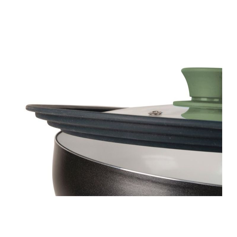 Deze universele deksel past op pannen met een diameter van 24, 26 en 28 cm. De glazen deksel heeft een siliconen knop en rand. De siliconen rand maakt deze deksel universeel.