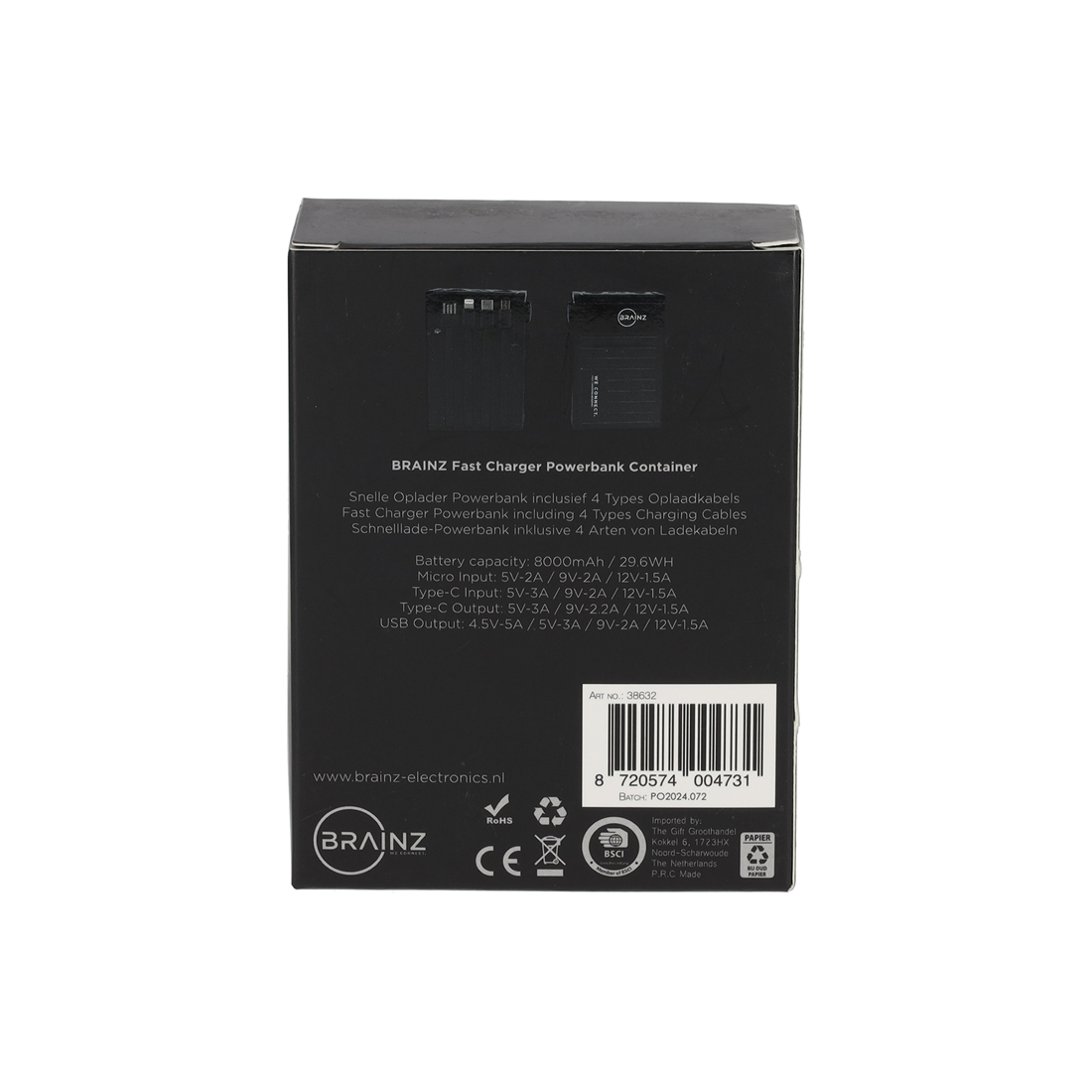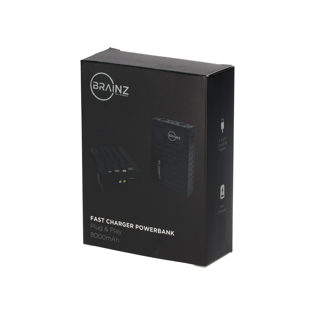 Deze stoere Fast Charger Powerbank van Brainz mag eigenlijk niet ontbreken in je keukenla, caravan, noodpakket of backpack! De Powerbank heeft een capaciteit van 8000 mAh en is geschikt voor iedere telefoon of tablet dankzij de diverse aansluitkabels die mooi in de achterzijde zijn weggewerkt. Op het display aan de voorkant zie je precies hoeveel batterij er nog over is. Extra handig: deFast Charger Powerbankheeft ook een zaklampfunctie. Zo heb je altijd genoeg power en licht bij de hand!