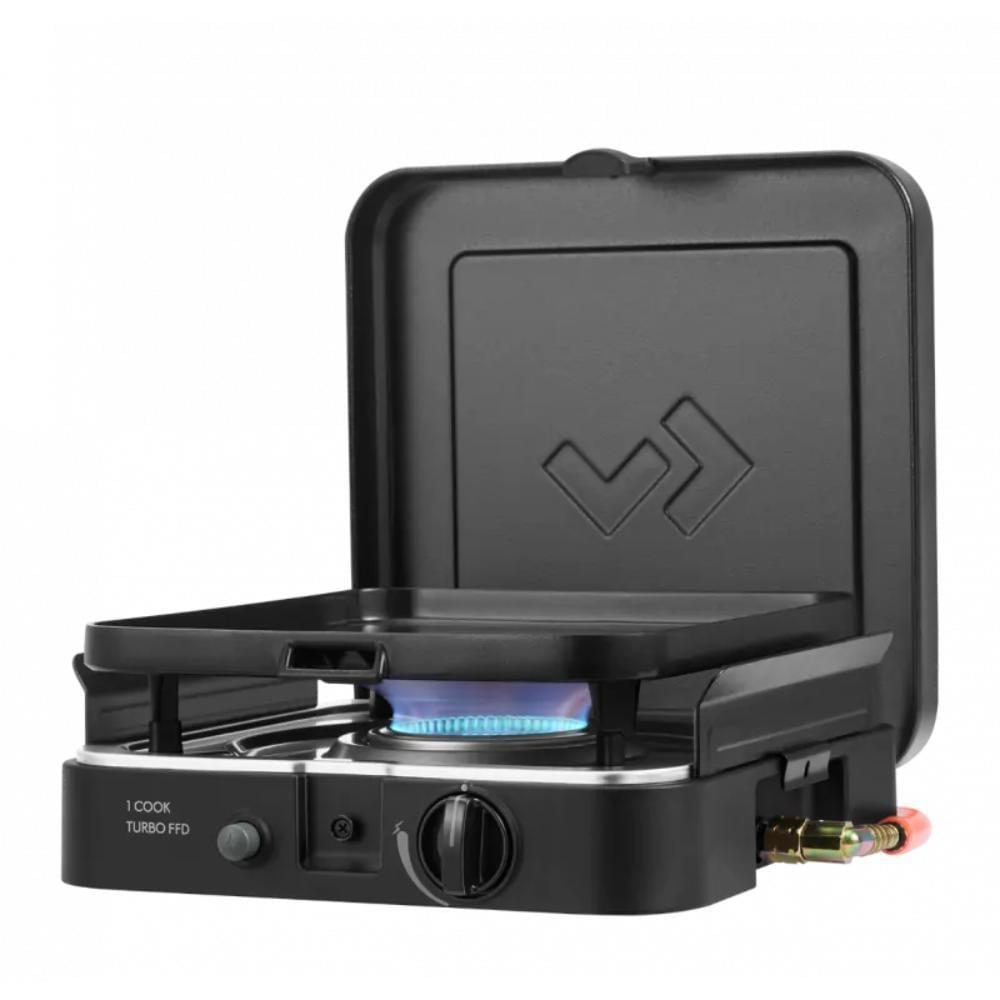 Wil je lekker koken op de camping, maar ook gewoon binnen in je tent of caravan? Dan is de 1 Cook Turbo FFD Deluxe precies wat je nodig hebt. Dit 1 pits gaskooktoestel is klein en licht, maar groot in mogelijkheden. Of je nu wilt bakken, koken of grillen, met de meegeleverde accessoires heb je altijd alles bij de hand.