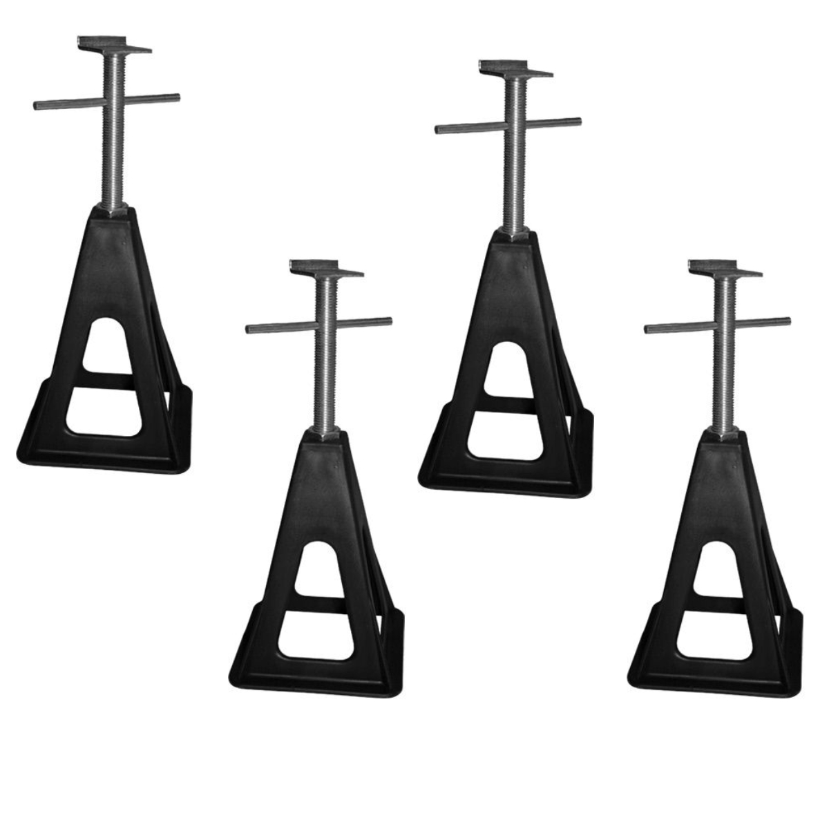 Deze Eco-Jack assteunen kun je gebruiken om de uitdraaisteunen van je caravan te ontlasten. Dit is vooral handig wanneer je voor langere tijd op dezelfde plek staat. De steunen zijn van kunststof en dus lichtgewicht. Iedere assteun kan tot 700 kg belast worden en kan in hoogte versteld worden. Zo kan een hoogte van 30cm tot 42cm bereikt worden.