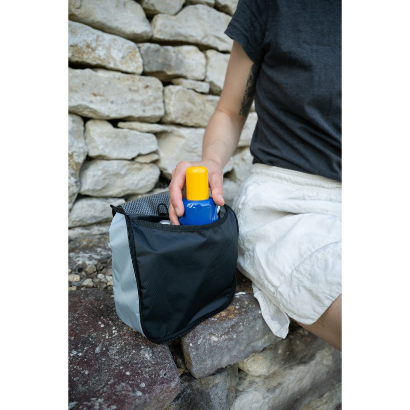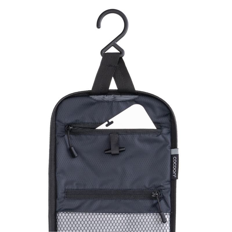 De meest handige toilettassen zijn degene die je op kan hangen. Nou, die hebben we! De Allrounder Toilettas van Cocoon doet zijn naam eer aan. Dankzij de handige haak hang je hem op in je douchehokje, bij je toilettafel of aan een lusje in je tent. Met deze toilettas van gerecycled polyester heb je alles bij de hand. En mocht er een flesje gaan lekken in de tas is dat niet erg, de binnenzijde is water- en vuilafstotend.
