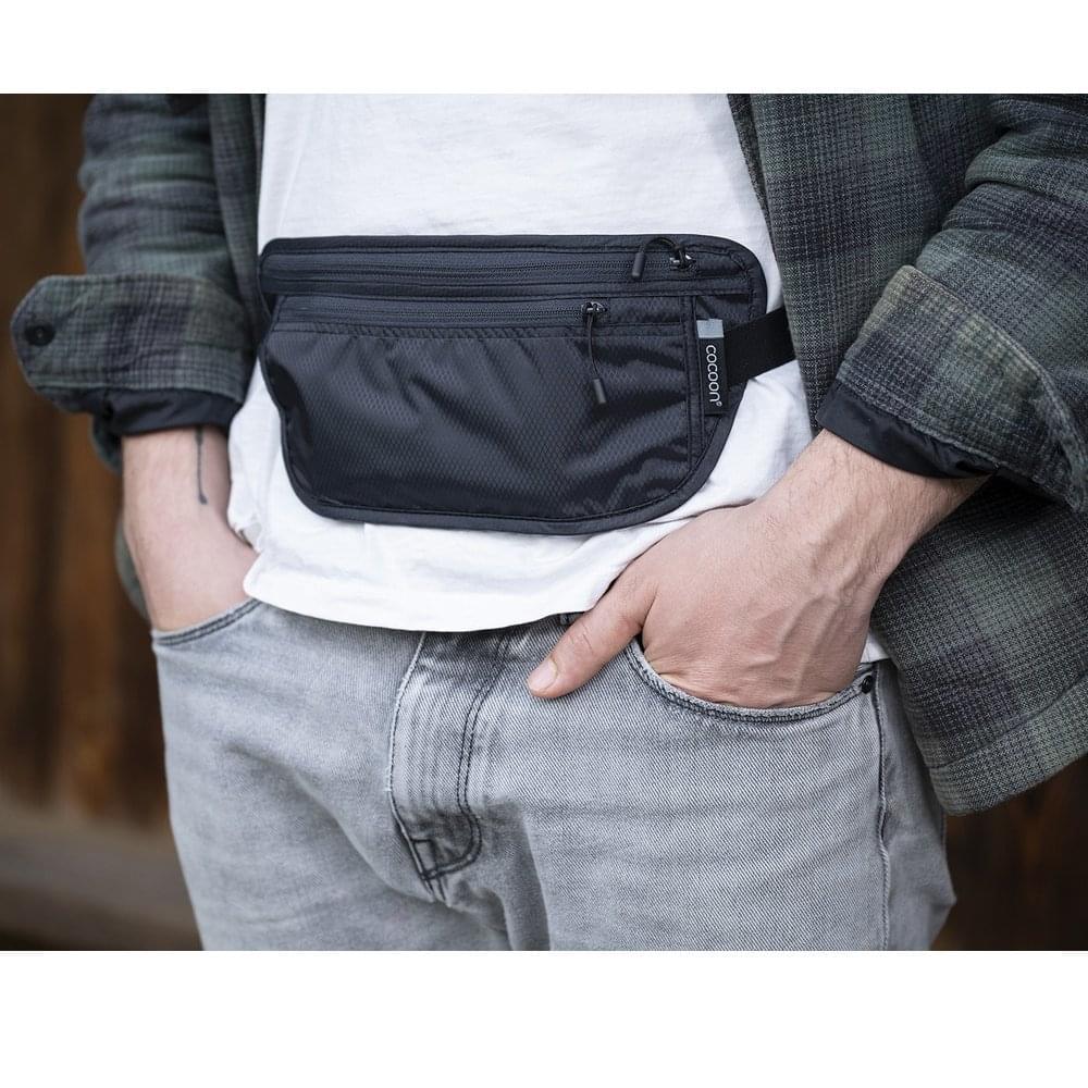 Het is prettig om je pasjes veilig bij je te houden als je op reis bent in onveilige gebieden. Of je bent op citytrip of zelfs als je een avondje gaat stappen. Dat kan met de Travel Waist Wallet van Cocoon. Er is genoeg ruimte voor je contant geld, pasjes en zelfs een mobiele telefoon. Je kunt deze georganiseerd opbergen doordat er twee vakken in de portemonnee zitten die ook nog eens RFID veilig zijn. Dat houdt in dat je pasjes worden beschermd tegen ongewild scannen. Het 3D mesh aan de achterzijde voorkomt dat het te warm aanvoelt op je huid, terwijl de elastische verstelbare band comfortabel zit. Je draagt de waist wallet op je buik, boven of onder je kleding.