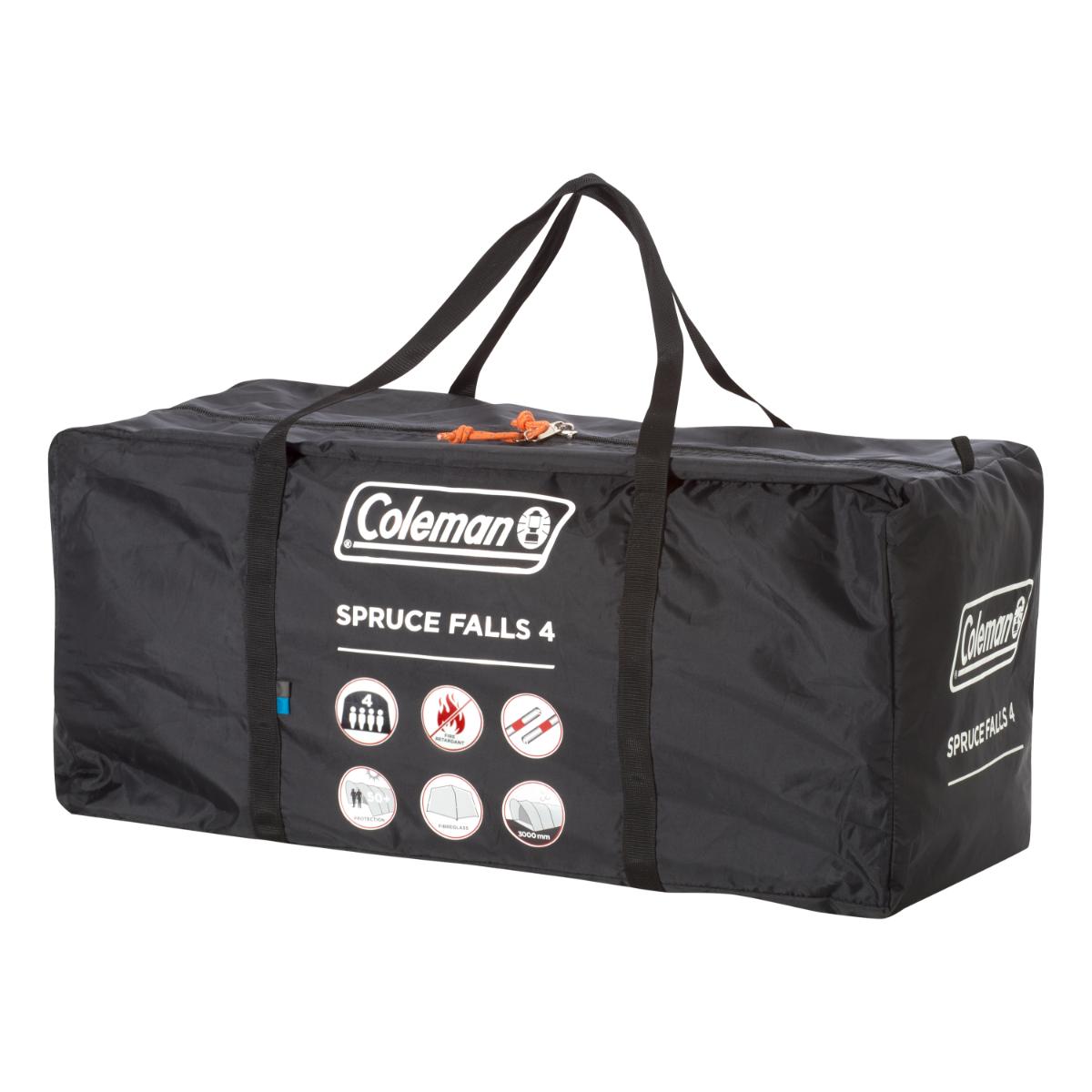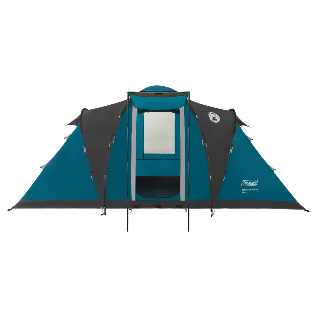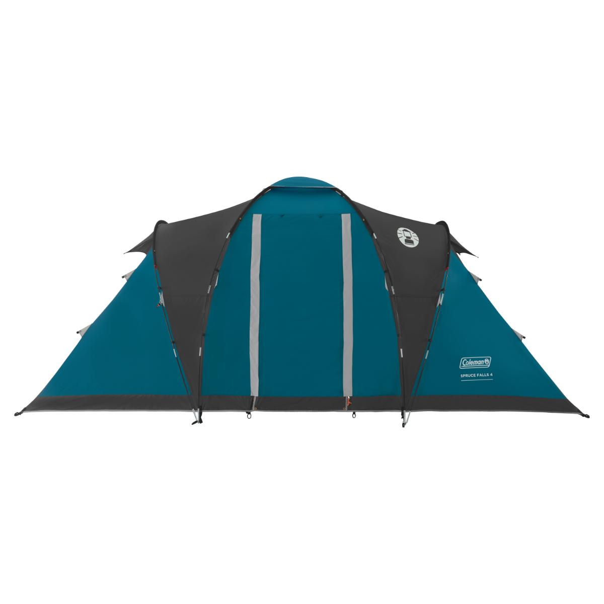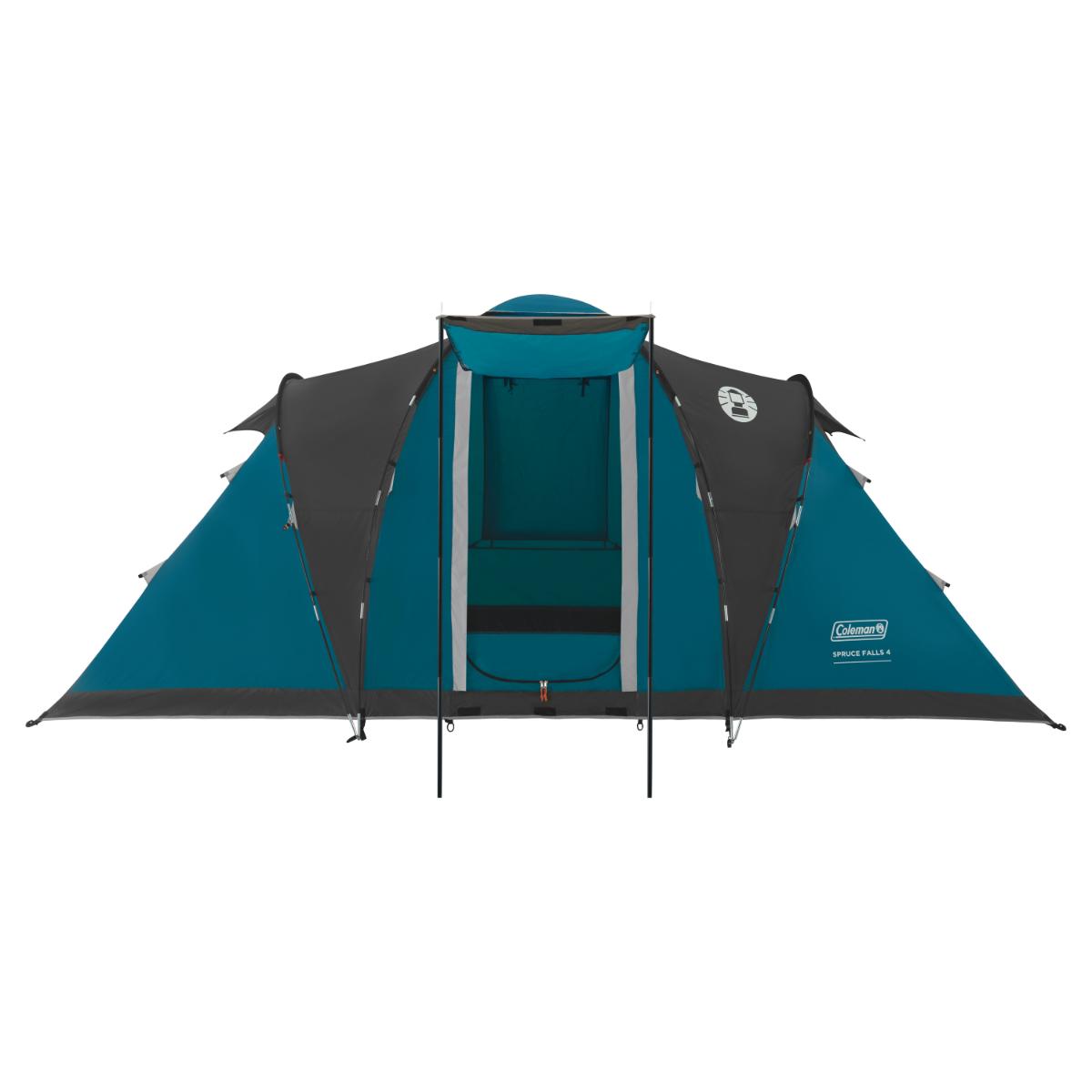Met een focus op comfort en privacy heeft Coleman de Spruce Falls 4-persoons tent uitgebracht. Een slimme indeling met tegenover elkaar liggende slaapcabines zorgt ervoor dat deze tent voldoende ruimte heeft voor vier personen. De lichte en ruime leefruimte vormt daarnaast het hart van de tent, terwijl de aangelegen slaapcabines ruim genoeg zijn.