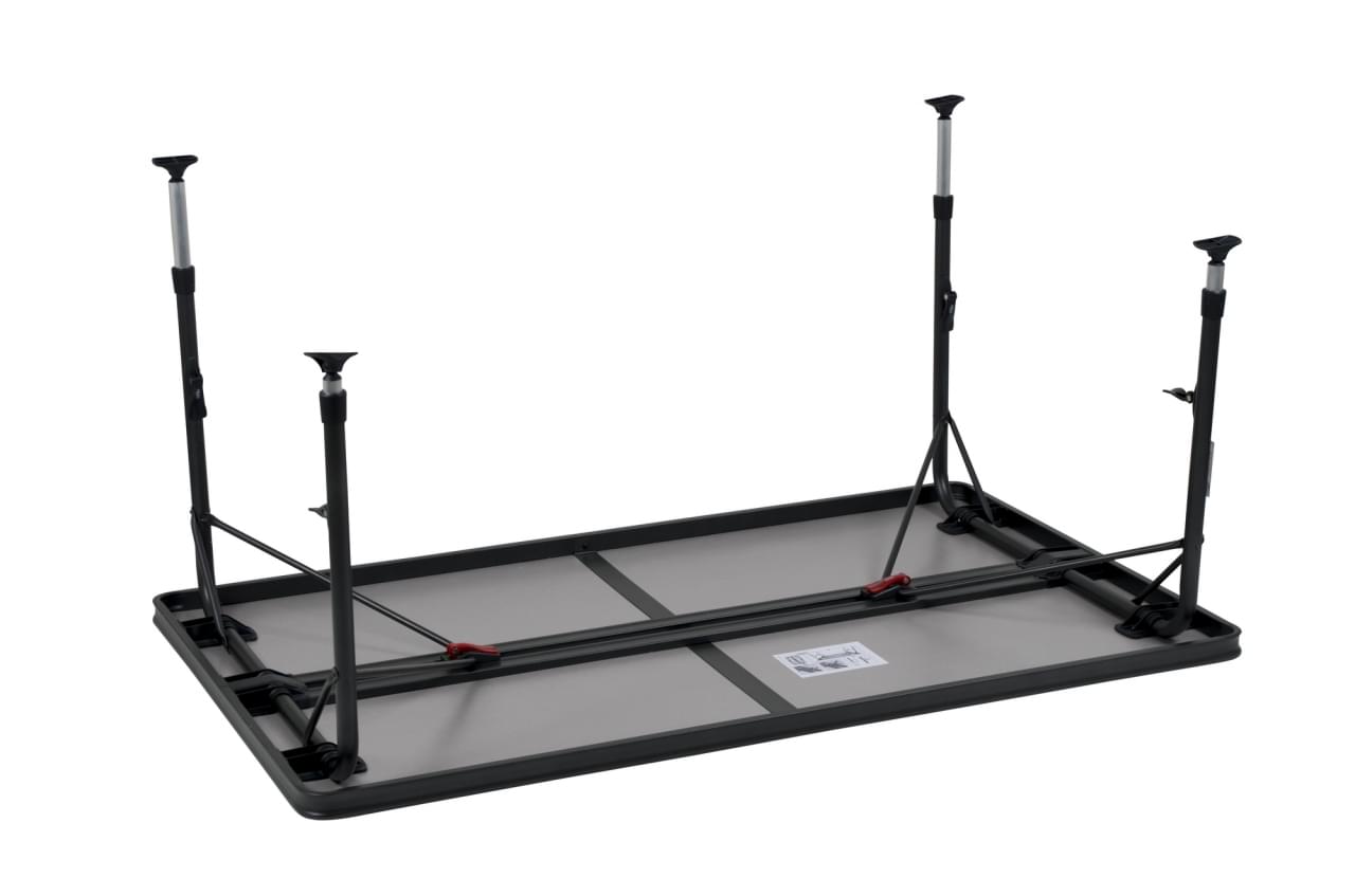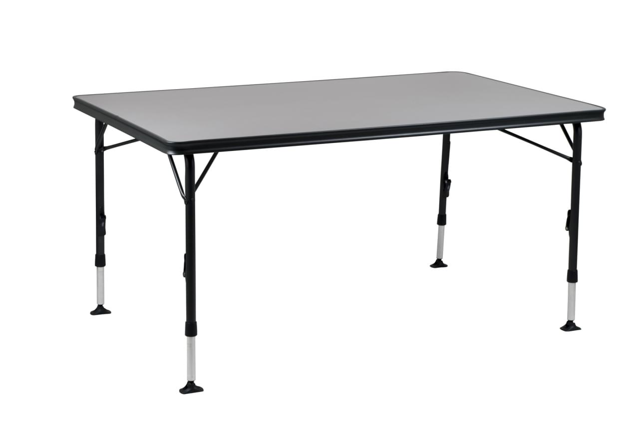 Het blad van deze campingtafel van Crespo bestaat wel uit 1 stuk en kan dus niet dubbelgevouwen worden. Dit zorgt ervoor dat het een flink pakket is om mee te nemen. Daarentegen is hij heel erg dun. En als hij eenmaal staat, wat een ruimte heb je dan. Heerlijk luxueus op vakantie of natuurlijk ideaal voor elke seizoenkampeerder.