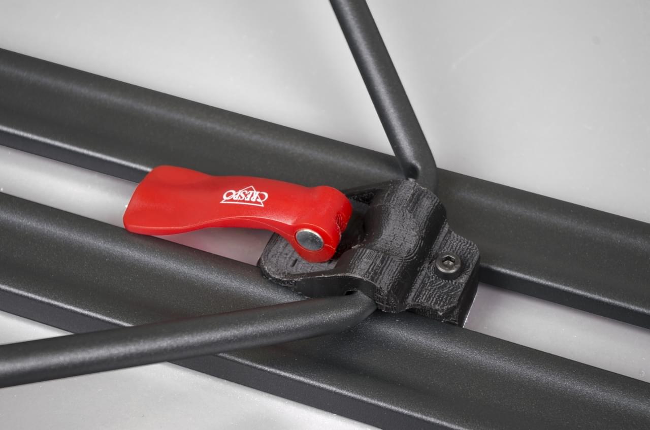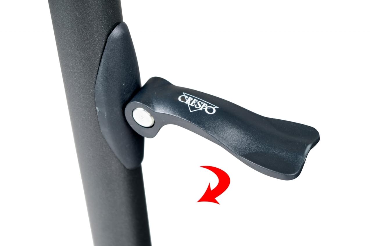 Het klepje waarmee je de stelpoot vastzet kan ronddraaien. Zitten de poten te los dan is het een kwestie van de klepjes ronddraaien totdat ze wat vaster zitten. Begin met een halve draai, vaak is dat al voldoende. Het klepje moet vast genoeg zitten zodat de stelpoot vast zit maar het klepje nog in te klappen is.