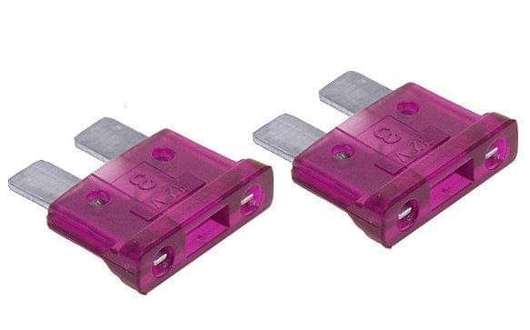 Bladzekering van 3 Ampère. Deze zekering is onder andere geschikt voor Thetford toiletten. Wordt per 2 stuks geleverd.