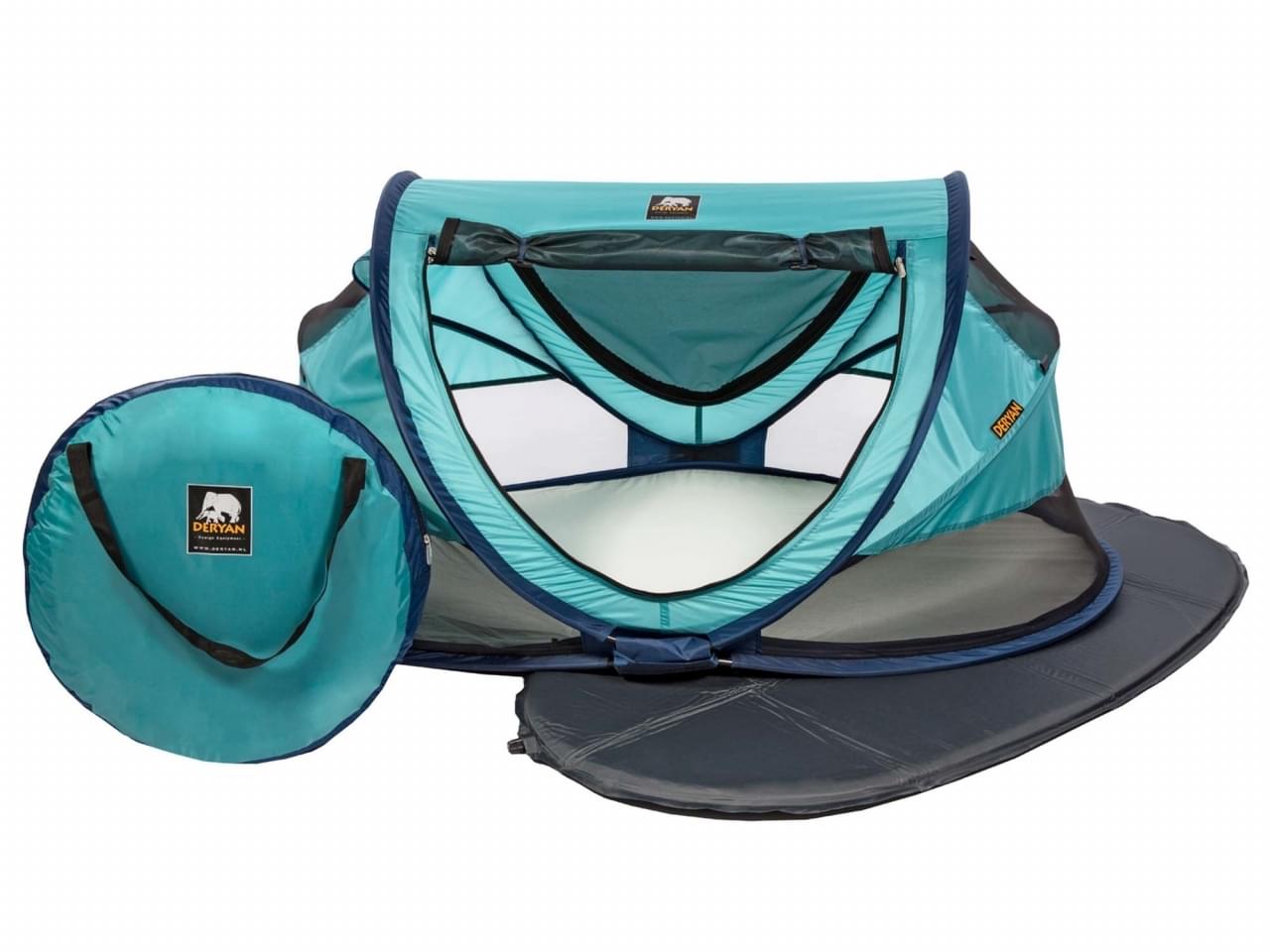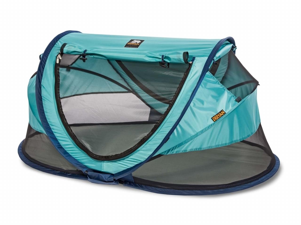 Het Peuter Luxe campingbedje van Deryan is de ideale lichtgewicht vervanger van het campingbedje. Dit tent-achtige bedje zorgt dat je dreumes of peuter rustig kan slapen in zijn eigen schone bedje. Naast het bieden van een veilige slaapplek beschermd de tent ook tegen de zon en muggen of andere insecten. Het gaas heeft gaatjes die kleiner zijn dan 1 mm, waardoor muggen hier niet doorheen kunnen komen. Ook kunnen de ramen verduisterd worden. Erg handig dus voor op de camping, maar ook voor een dagje strand of thuis in de tuin.
