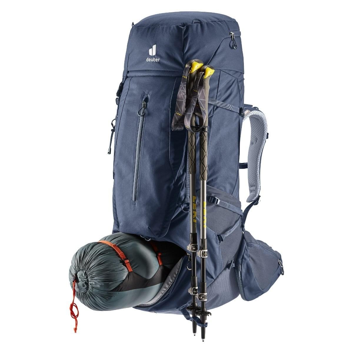 Het deksel is eveneens los te maken van de backpack en heeft hierin een losse rugzak zitten. Wanneer je beschikt over wandelstokken, dan kunnen deze gemakkelijk bevestigd worden met de daarvoor bedoelde elastieken en lussen. De backpack is ook nog eens voorzien van een regenhoes.