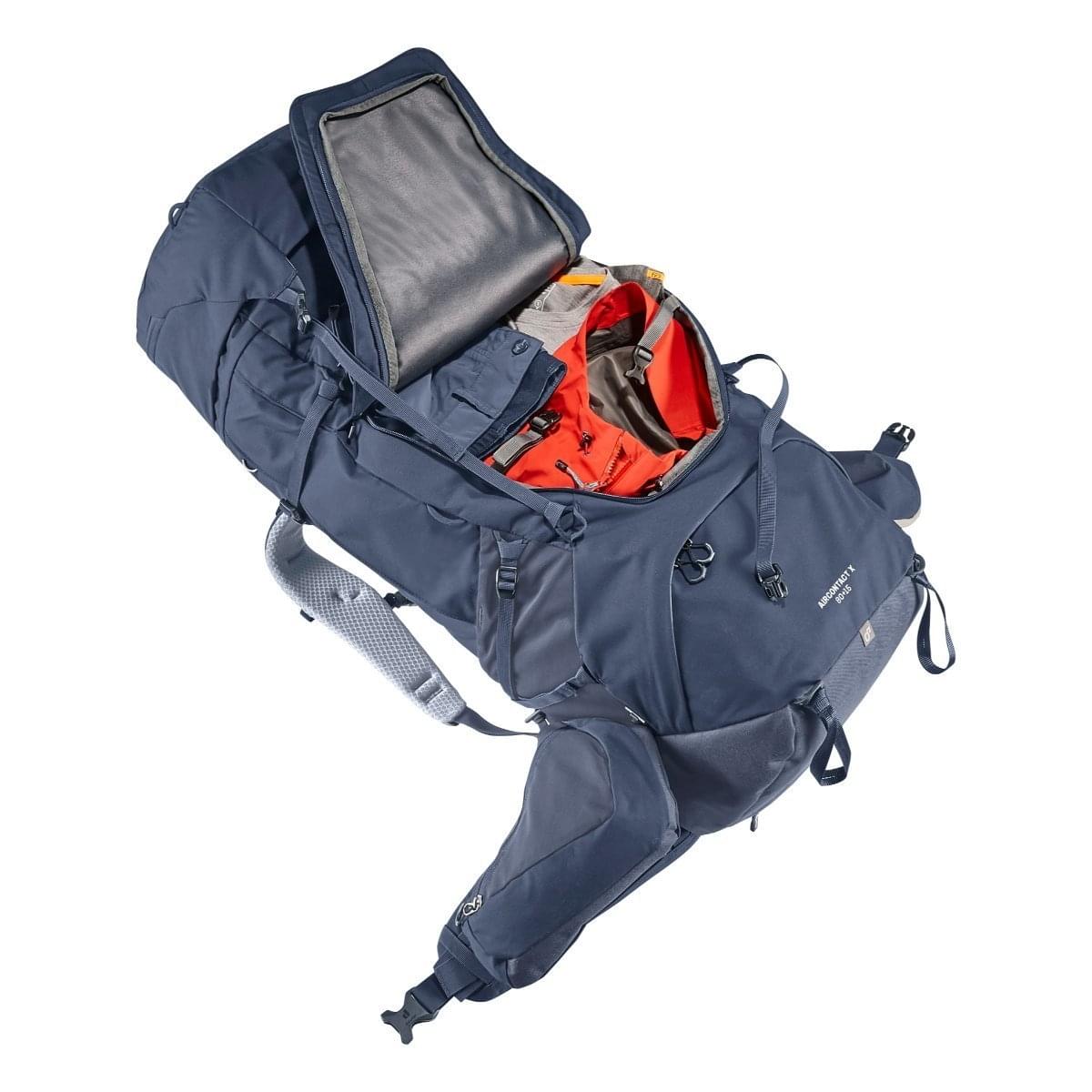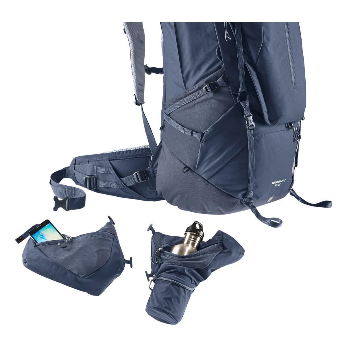 Het grote vak van de Aircontact X 80+15 kan gemakkelijk via de ritsen aan de voorkant worden geopend voor een goed overzicht. Door gebruik te maken van de aanritsbare tussenbodem kun je het geheel nog beter compartimenteren. Tussen de stevige heupvinnen en de tas zitten twee grote afneembare tasjes voorzien van een doorzichtige mesh structuur. In deze tasjes heb je ook de mogelijkheid om een bidon mee te nemen. Daarnaast is de rugzak ook geschikt voor een drinksysteem zodat je altijd voldoende vocht bij je hebt.