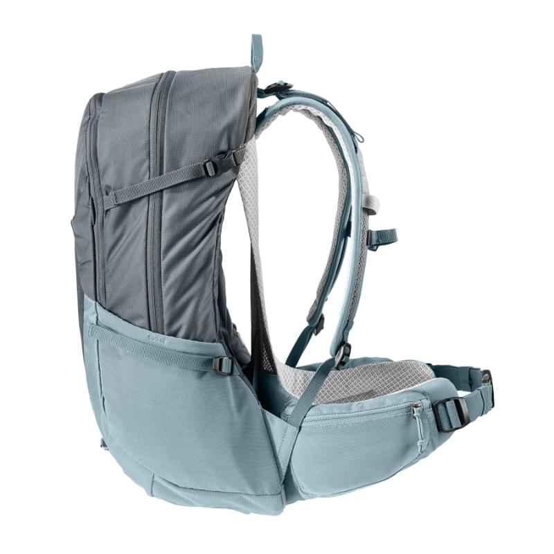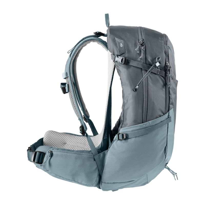 De Futura 25 SL lichtgewicht dagrugzak van Deuter is speciaal voor dames gemaakt. De rugzak is voor een kortere ruglengte bedoeld en is voorzien van smallere schouderbanden. De taps toelopende heupvinnen zorgen voor maximaal comfort. Het Active Fit systeem dat verwerkt is in het rugpand maakt dat de schouderbanden een stuk vrijer bewegen. Zo wordt de belasting beter verdeeld over de rug en heb je minder last van druk op de schouderbladen en spieren. Het lichtgewicht materiaal van de dames dagrugzak is voor 50% gerecycleerd en werkt scheurbestendig, ideaal voor een wandelrugzak.