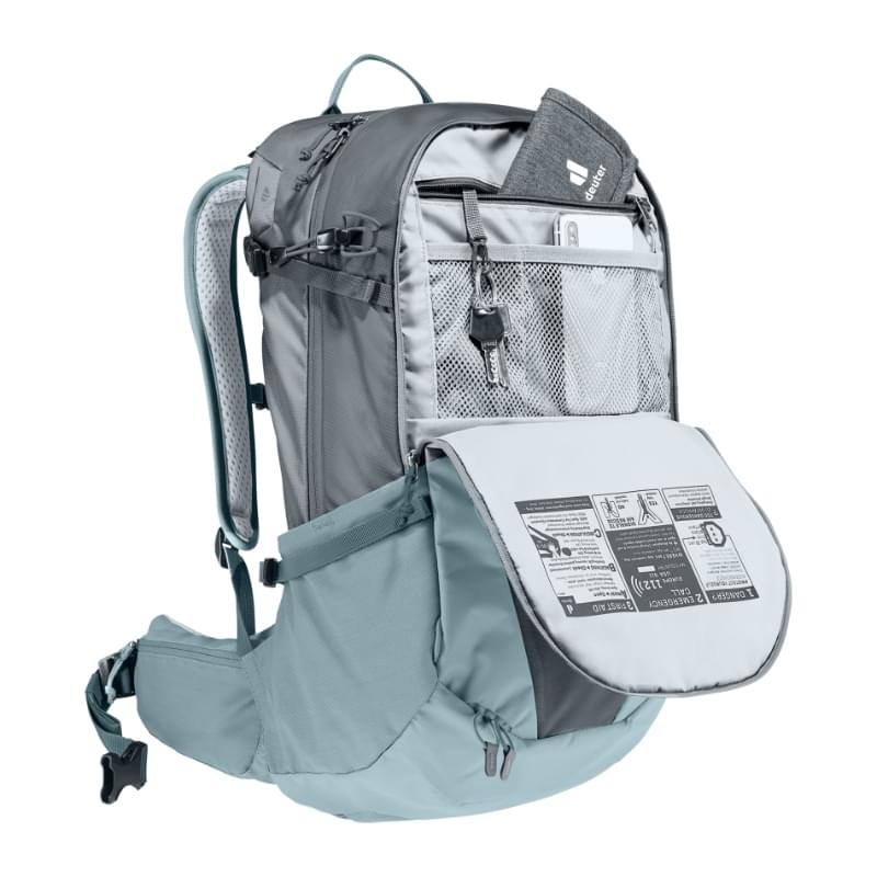 De Futura 25 SL heeft veel praktische features, waaronder twee elastische zijvakken, een afneembare regenhoes en lussen voor wandelstokken. Ook heeft de dames rugzak een voorvak waar een organizer in verwerkt zit. Hier kun je spullen zoals pennen en een laptop in kwijt. Daarnaast zorgt het Aircomfort systeem ervoor dat je maximale ventilatie ervaart.