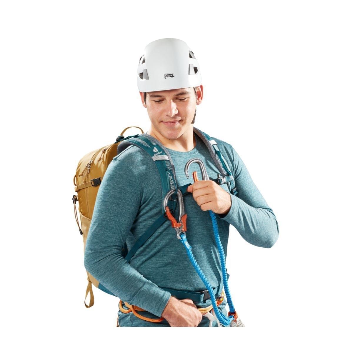 De lussen op de schouderbanden zijn handig om bijvoorbeeld je karabiners binnen handbereik te hebben. En heb je toch onderweg iets nodig uit je rugzak? De tas heeft een grote ritsopening aan de voorkant en diverse zijvakken. Zo heb je altijd en overal snel en gemakkelijk toegang tot je spullen.