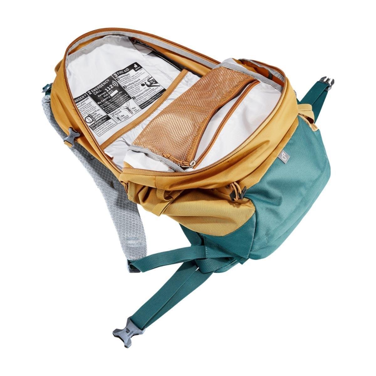 In combinatie met de taps toelopende ActiveFit schouderbanden en de ergonomisch gevormde heupvinnen, biedt de rugzak een uitgebalanceerde pasvorm en dat is te merken. Vooral op ongelijk terrein heb je daar voordeel van. Zo heeft deze Deuter rugzak een plat deksel, dat zorgt ervoor dat je je hoofd vrij kunt bewegen, zelfs als je een helm draagt.