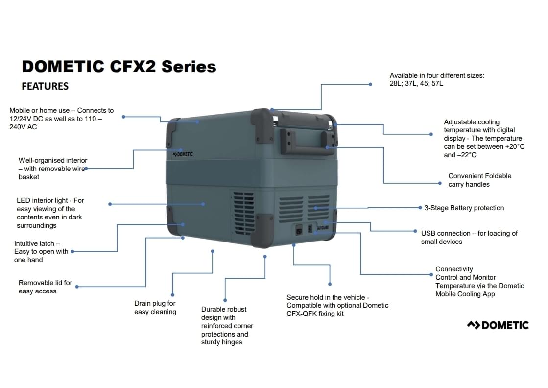 Deze compressorkoelbox van Dometic is uitgerust met een krachtige en energiezuinige compressor die zorgt voor een nauwkeurige en betrouwbare koeling, ongeacht de omgevingstemperatuur. De koelbox heeft een laag energieverbruik en kan worden aangesloten op zowel 12/24V DC als 100-240V AC, waardoor hij zowel onderweg als thuis te gebruiken is.