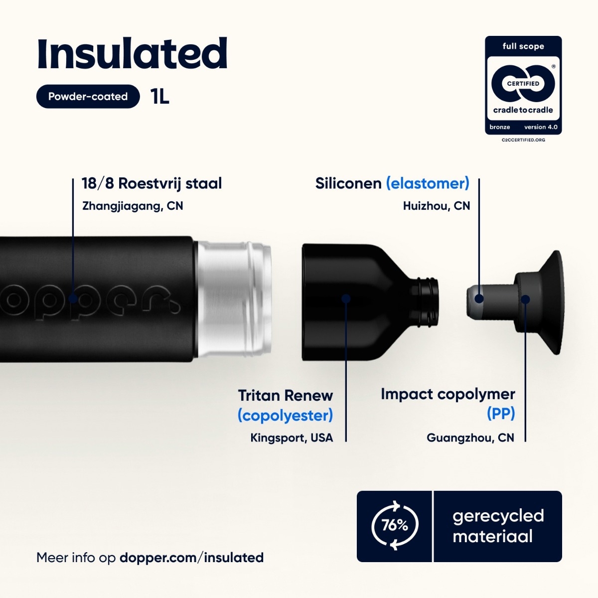 | Materiaal | Polypropyleen, RVS en Tritan |