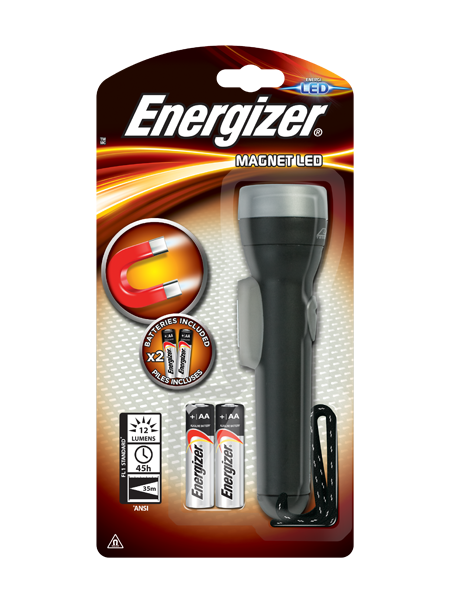 Een handige 1 Toorts zaklamp van het merk Energizer. De lamp werkt op 2 AA batterijen en heeft een magneet op het handvat. De lamp wordt geleverd met 2 AA batterijen.