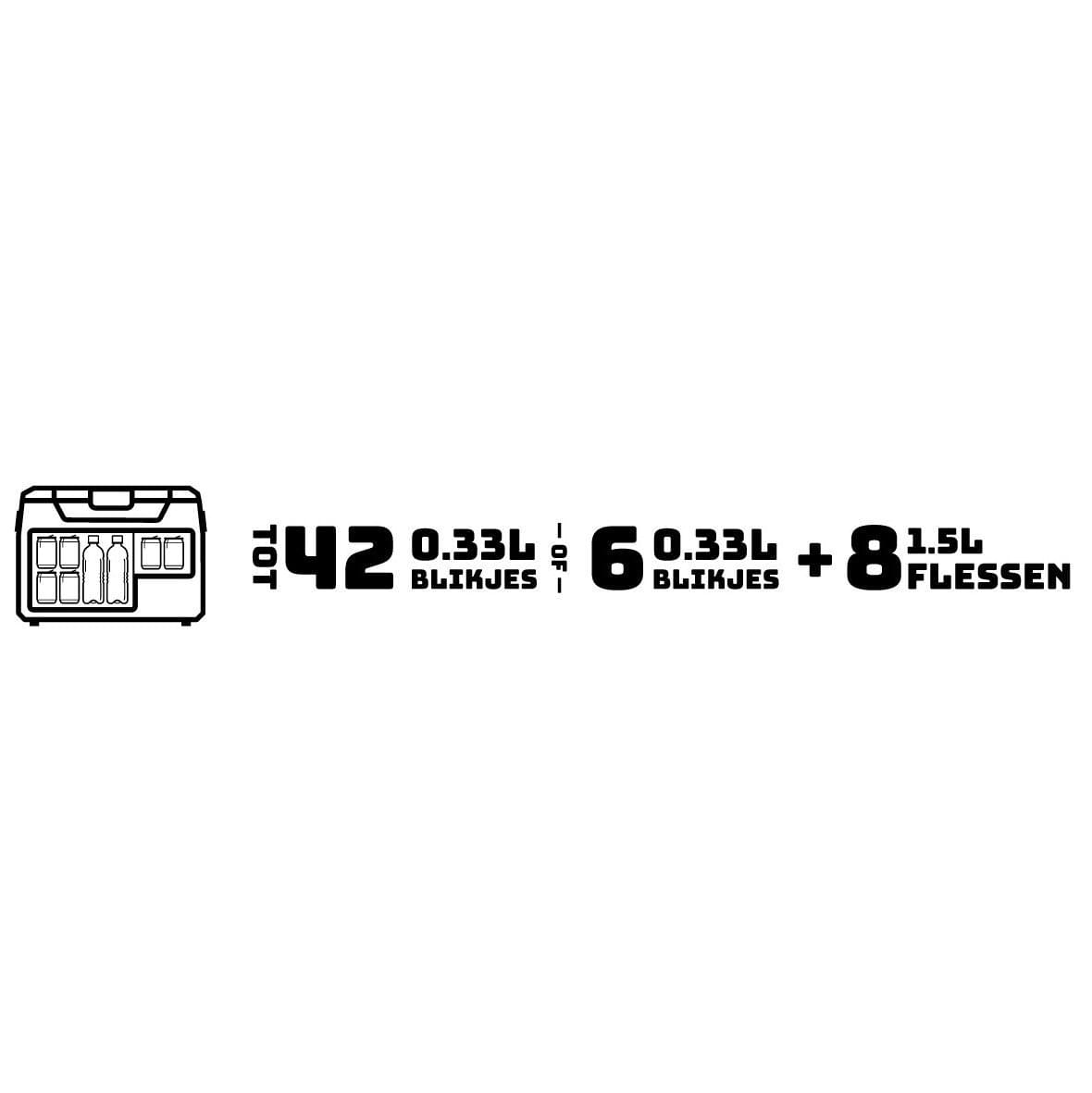 - Plaats voor 8 flessen van 1,5L of 42 blikjes van 0,33L