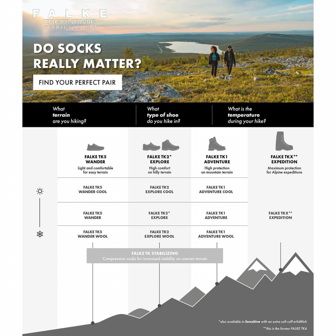 De Falke TK 2 is een sok met een optimale drukverdeling. De drukpunten van je voeten worden maximaal ontlast doodat Falke gebruik maakt van zeer grote inzet stukken op de sok. De zeer goede ventilatie en vochtafvoer zorgen dat je minder snel te warme voeten krijgt. Er is Merino wol gebruikt in de wandelsokken. Dit merk je vooral tijdens de wat koudere omstandigheden.