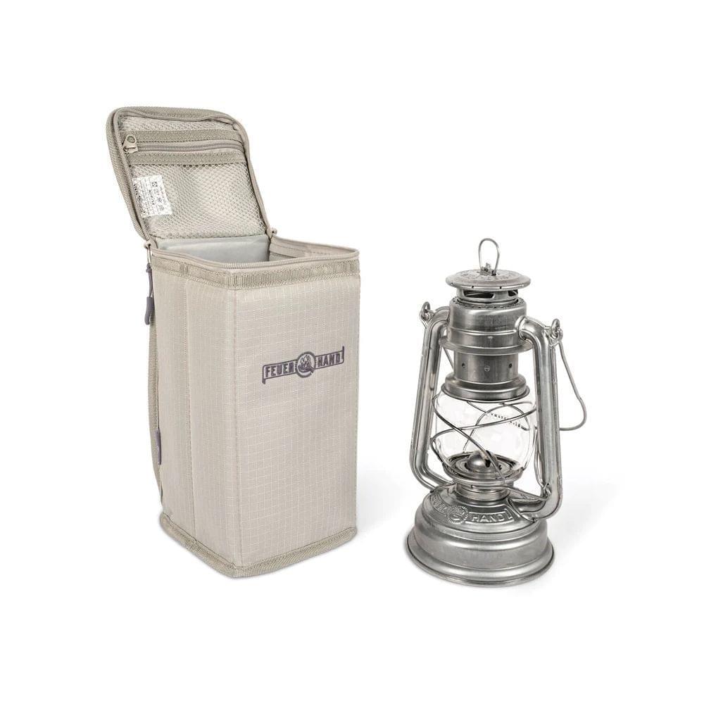 Heb je dat ook wel eens je wil graag je Stormlamp meenemen naar de camping of die gezellige BBQ bij de buren voor in de late uurtjes, maar het niet doet omdat hij toch best wel breekbaar is? Feurerhand heeft daar iets voor bedacht! De Transporttas voor Stormlamp 276 is een perfect passende hoes, gemaakt van waterafstotend materiaal en voorzien van dubbele rits en een extra opbergvakje voor bijvoorbeeld lont of een aansteker. Door het 600D Ripstop polyester berg je je lamp water- en vuilvrij op en door de versterkte binnenwand is hij klaar voor transport.