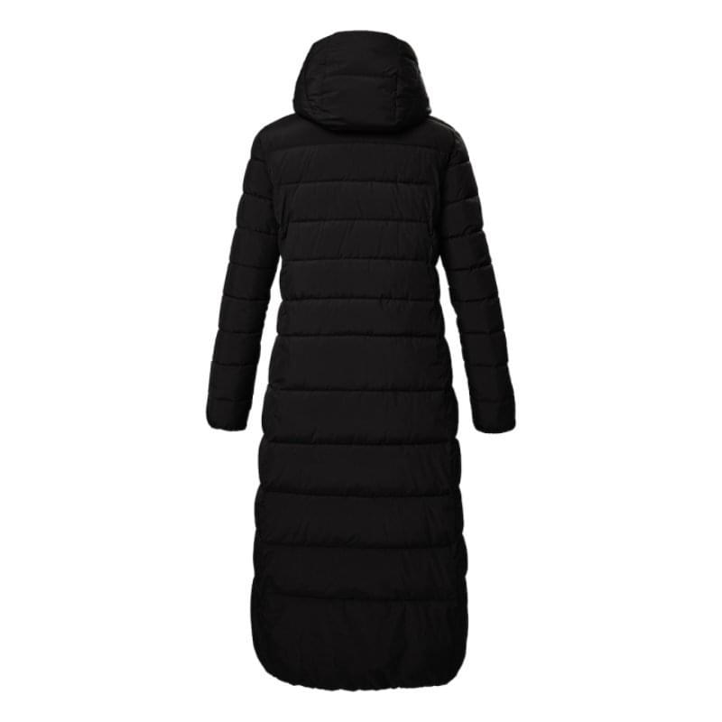 De lange damesjas in donslook van G.I.G.A. DX is een modieuze en praktische keuze voor het winterseizoen. Deze gewatteerde jas biedt uitstekende bescherming tegen weer en wind dankzij het waterafstotende materiaal met een waterkolom van 8.000 mm. Het ademende materiaal zorgt voor optimaal comfort. De verstelbare capuchon met trekkoord en de verborgen tweeweg-ritssluiting, die zowel van boven als van onderen geopend kan worden, bieden extra flexibiliteit en bewegingsvrijheid. De GW 19 heeft twee steekzakken met ritssluiting en een binnenzak voor voldoende opbergruimte voor je belangrijke spullen.