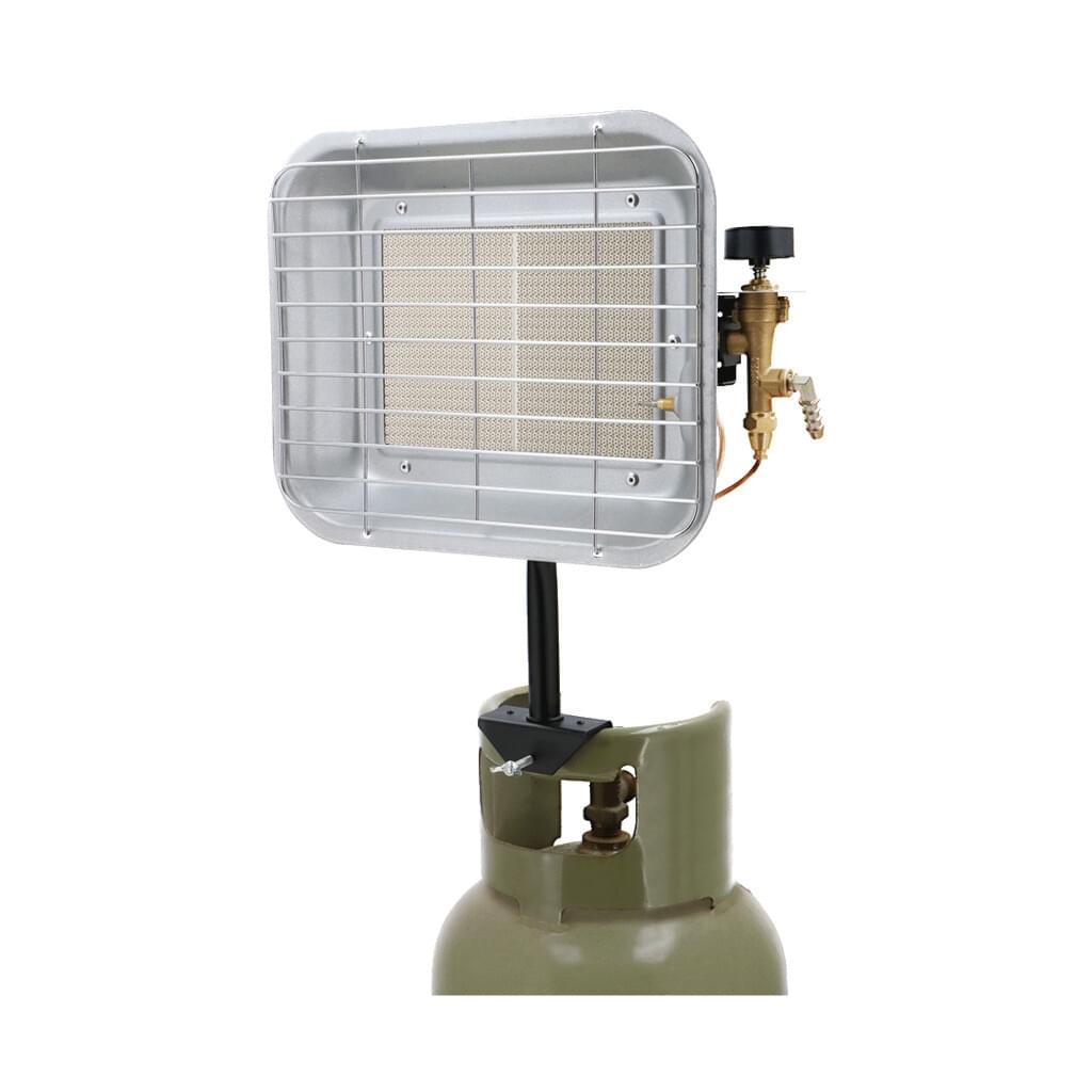 Een simpele maar zeer krachtige straler. De straalkachel van Gimeg kun je direct op een gasfles vastschroeven waardoor de gasfles ook meteen dient als standaard. De MES-300 heeft genoeg vermogen (4,5 kW) om kleine ruimtes te verwarmen. Ook deze kachel is thermo-elektrisch beveiligt zodat de gastoevoer wordt afgesloten als de vlam uitwaait.
