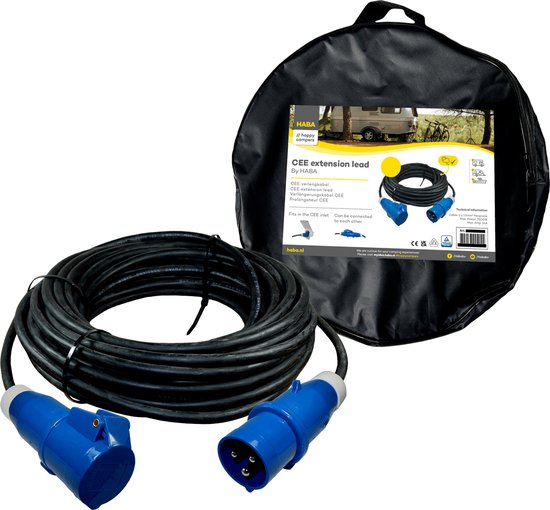 Haba - Verlengsnoer met CEE stekker en CEE contrastekker 20m