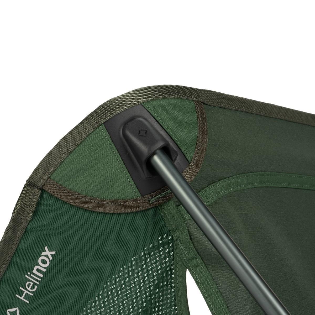De lichtgewicht stoel heeft daarnaast een sterker en dikker frame waarbij de vernieuwde nylon hars verbindingen voor meer stabiliteit zorgen. Op de hoeken van de zitting zijn de stoffen framehouders vervangen door kunststof framehouders, steviger en een stabielere zit. Uiteraard heeft de Chair One (re) een DAC-aluminium frame waarbij er gebruik is gemaakt van hergebruikt aluminium. Frame afval dat tijdens de productie ontstaat wordt vanaf heden hergebruikt als grondstof. Ook de robuuste 300D polyester stof is gerecycled en bluesign®-gecertificeerd. Sterkte gecombineerd met duurzaamheid, dat is waar Helinox voor staat.