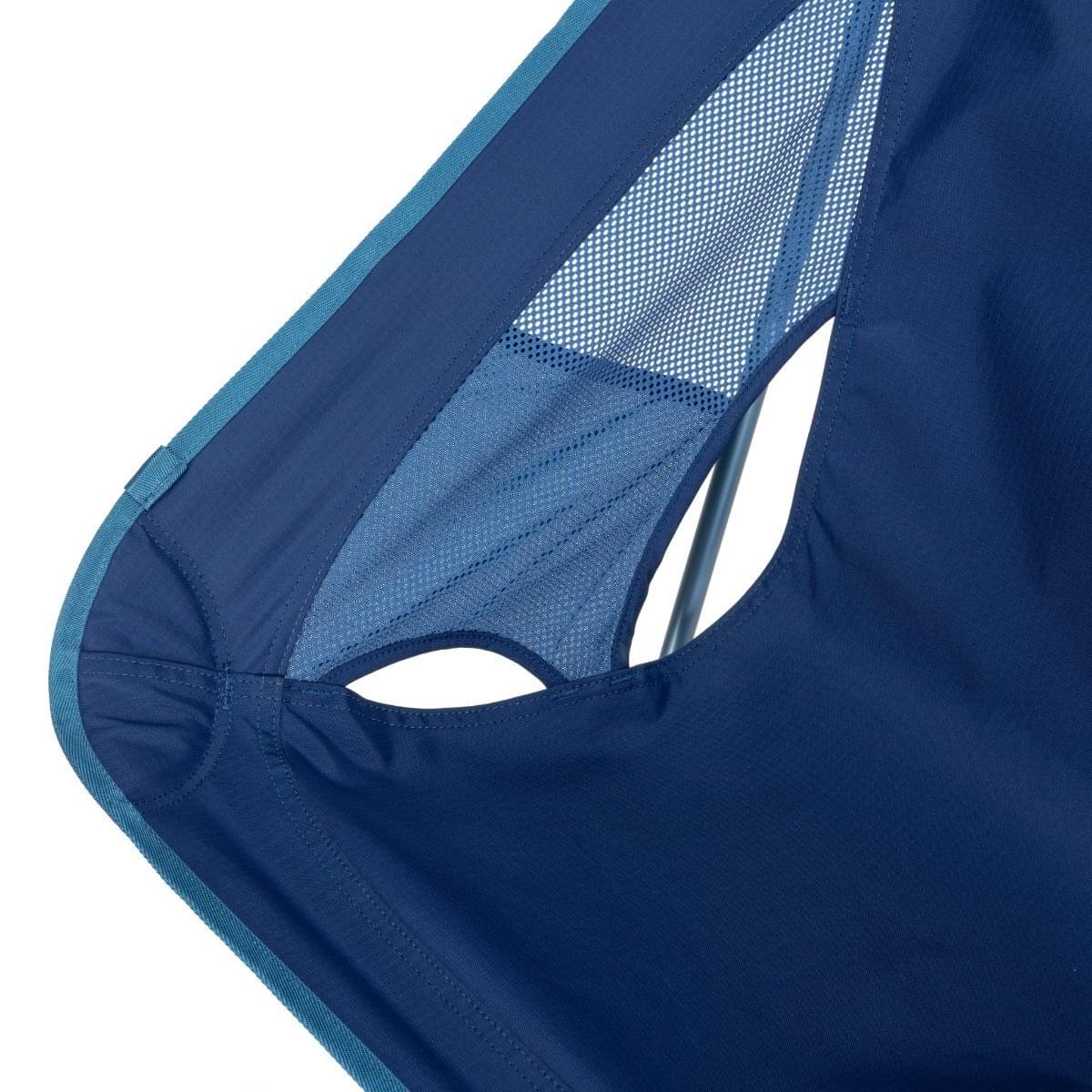 Tension Design zorgt er dus voor dat het gewicht beter verdeeld wordt. Het is eigenlijk een rand van stof die op een speciale manier rondom de zitting genaaid is waardoor er een extra spanningslijn is ontstaan. Daardoor heeft dit lichtgewicht stoeltje een stabielere en comfortabelere zit dan zijn voorganger. Anders dan de Chair One heeft de Re uitvoering geen mesh meer in de rug, ook dit draagt bij aan meer ondersteuning en een stabielere zit. Alleen aan de zijkanten van de stoel wordt er nog gebruik gemaakt van mesh voor de nodige ventilatie. De Helinox Chair One (re) bied je in alle opzichten meer comfort. Zo is de zithoogte verhoogd en heeft hij een bredere zit. Als extraatje heeft hij een geïntegreerd zijvakje zodat je alles bij de hand hebt.