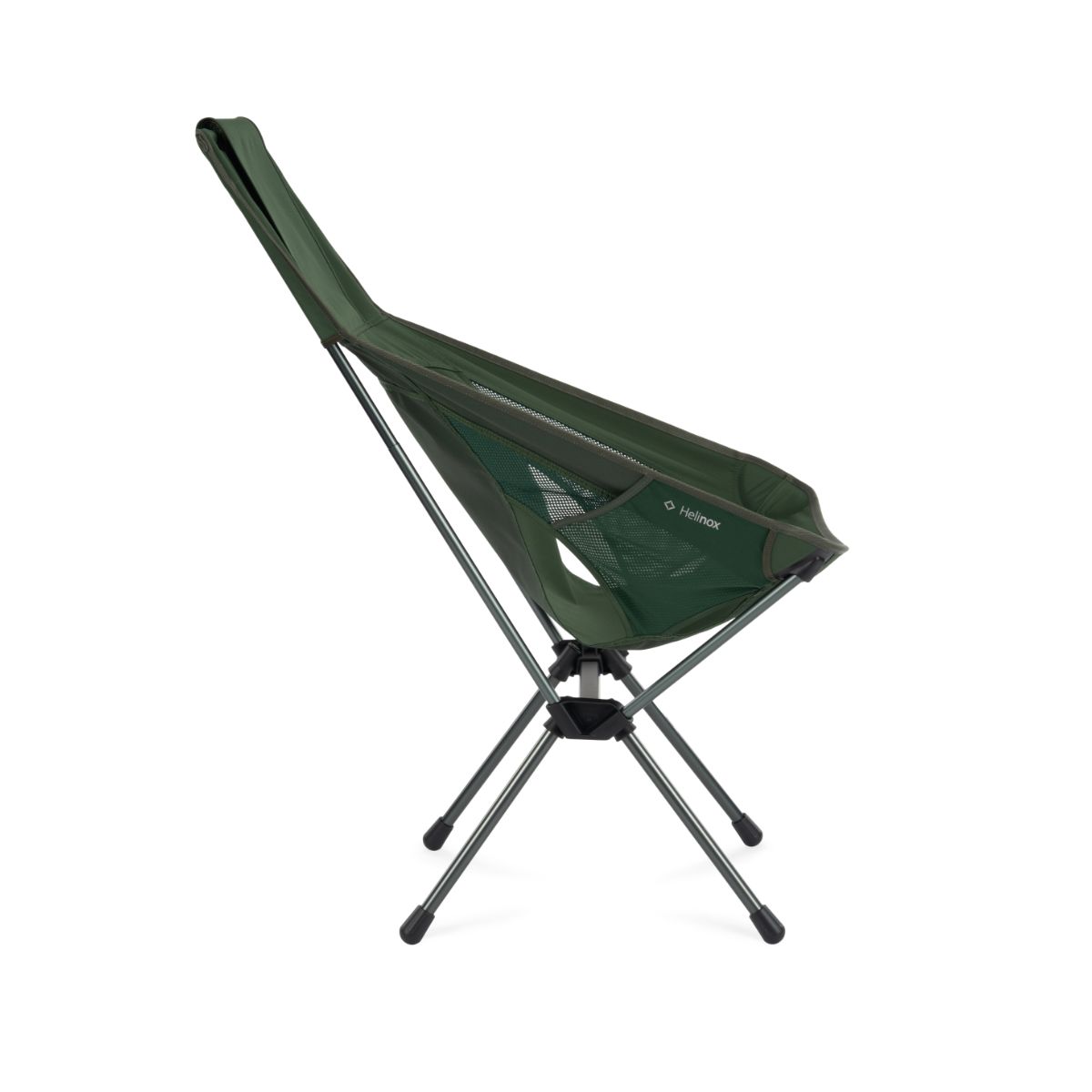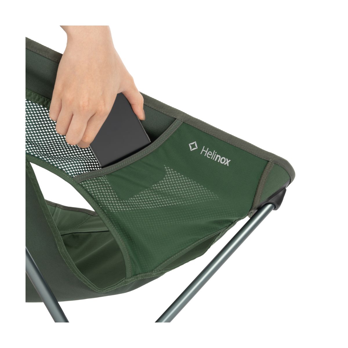 De stoel staat iets hoger, waardoor in- en uitstappen een stuk makkelijker gaat dan bij de lagere Helinox modellen. Het doek heeft een stoere canvas-look, is UV-werend en waterafstotend. Mesh-panelen aan de zijkanten zorgen dat het lekker ventileert.