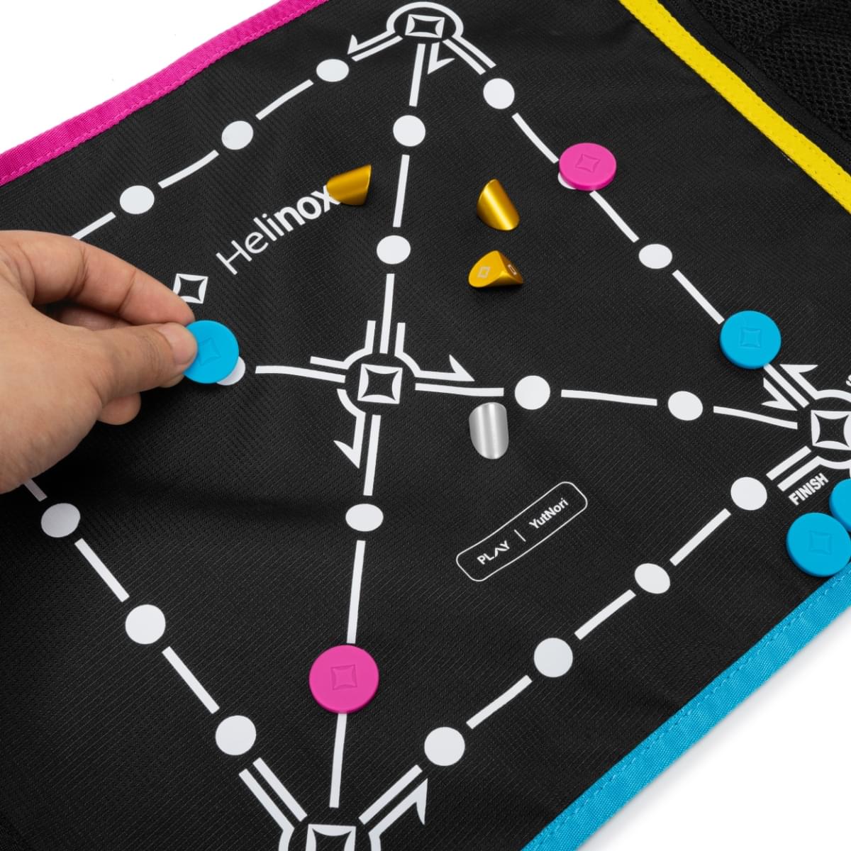 Het YutNori spel van Helinox brengt een stukje traditie in je vakantie. Dit traditionele Koreaanse bordspel draait om strategie, waarbij spelers om de beurt vier yuts (speelstenen) op het bord gooien. De uitkomst van elke worp bepaalt de voortgang, en het team dat als eerste al zijn mals (speelmarkers) volledig rond het bord krijgt en terug naar het startpunt brengt, wint. Het spel is eenvoudig te spelen, maar brengt toch veel uitdaging en plezier met zich mee.