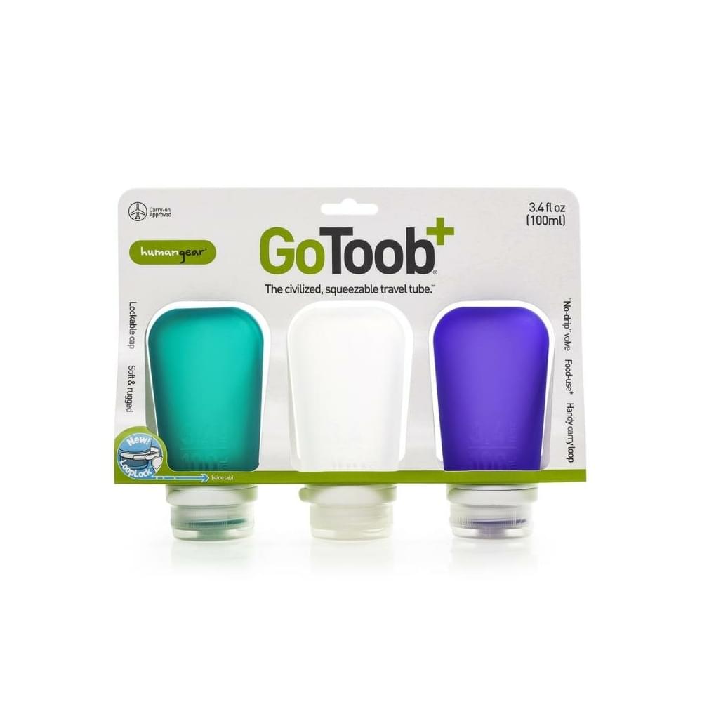 De GoToob+ 3-Pack van Human Gear is ontzettend handig voor het reizen. Het is TSA-goedgekeurd voor handbagage. Dit zijn kleine reisflesjes met een afsluitbare dop. Je kunt ze rechtop neerzetten en met de grote opening zal het vullen en schoonmaken extra gemakkelijk gaan. Het LoopLock systeem geeft de mogelijkheid de dop goed af te sluiten, maar ook om hem op te hangen met bijvoorbeeld een karabijnhaak. Je kunt ook gewoon onderaan de dop opschrijven wat er in de fles zit om het snel te herkennen.