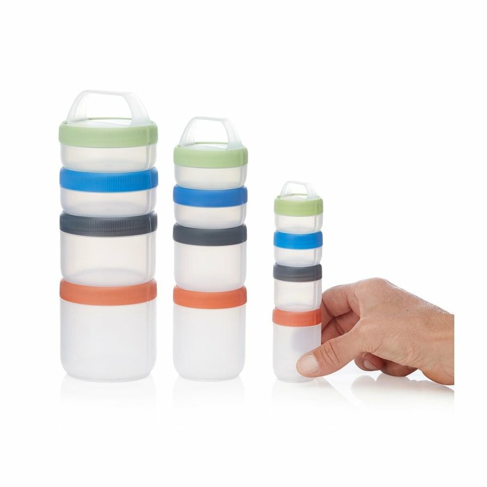 De Stax is een handig stapelcontainer systeem van Human Gear. Je kunt ze eenvoudig in elkaar klikken met een simpele draai van 180 graden. Lekvrij dankzij de siliconen pakking. Met de verwijderbare ClipHandle kun je ze aan een tas vastklikken of je draagt ze gewoon. Alle deksel zijn voorzien van een waterdichte strip. Ook handig dat je de bakjes op het dekseltje kunt zetten om het bij elkaar te houden, en zo voorkom je dat je ze kwijtraakt.