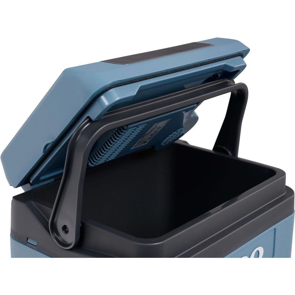 Door de stevige draaggreep kan je de koelbox eenvoudig optillen en verplaatsen, terwijl het deksel veilig vergrendeld kan worden. En als je wat uit de koelbox nodig hebt, kan het deksel open blijven staan met behulp van de draaggreep. De stroomkabels kunnen netjes worden weggewerkt in het kabelcompartiment in de deksel.