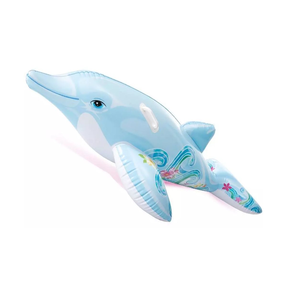 Hoe gaaf is deze opblaasdolfijn! Dankzij de twee handgrepen kan je op de rug van de dolfijn zitten en lekker genieten van de golven! De dolfijn heeft een afmeting van: 175x66 centimeter. De opblaasdolfijn is geschikt voor kinderen vanaf 3 jaar.