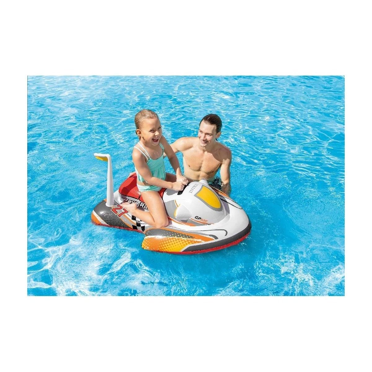 Cross over het water met de Ride-On Waterscooter van Intex, met handgreep en brede basis voor een stabiele zit.